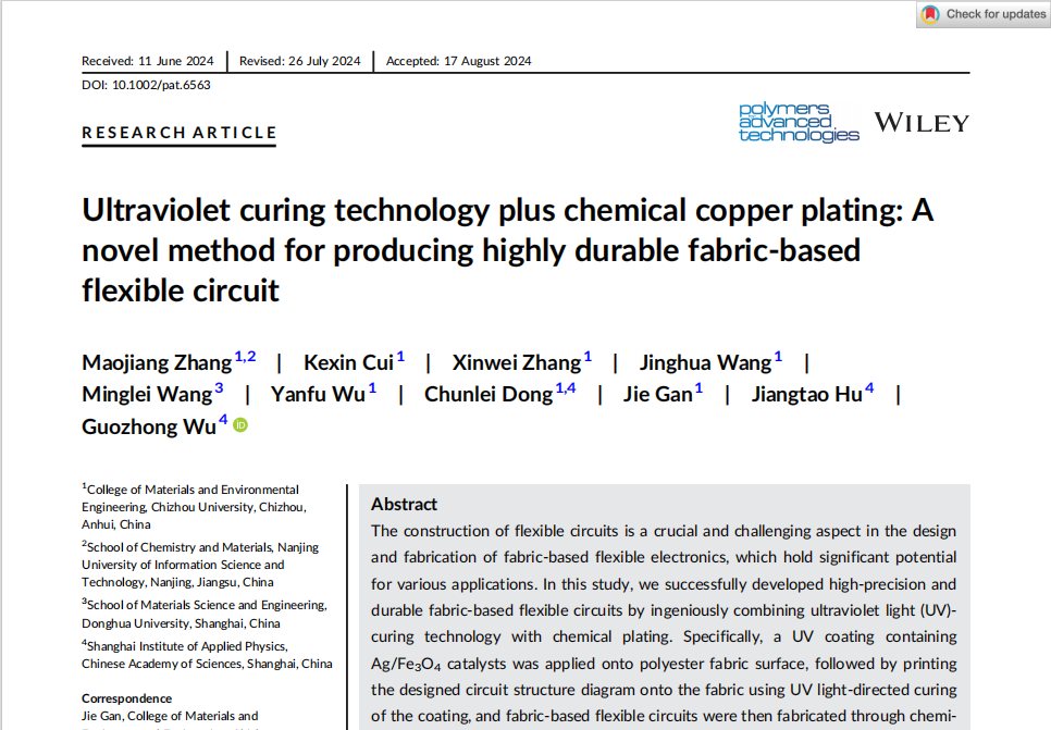 张茂江在期刊Polymers for Advanced Technologies上发表论文