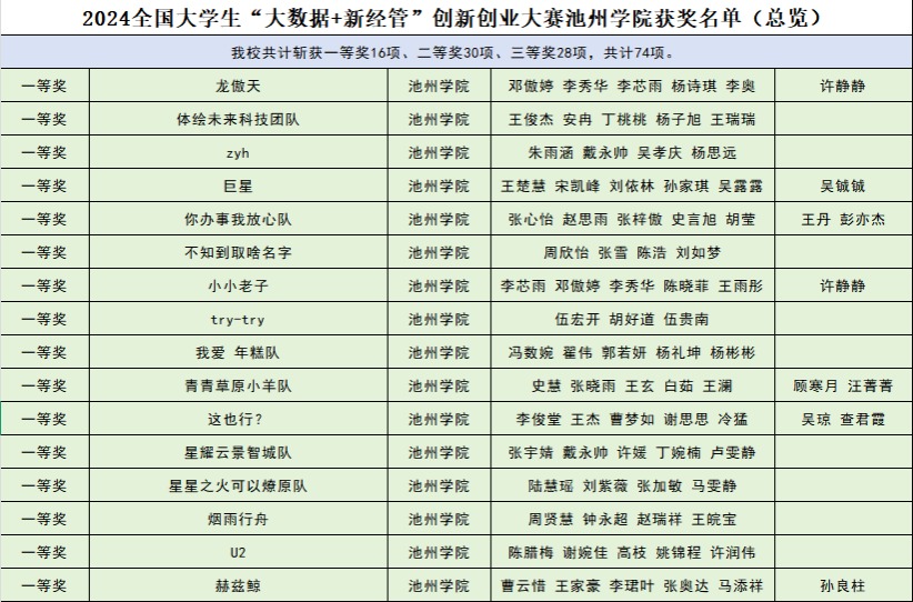 近日,2024全国大学生“大数据+新经管”创新创业大赛成绩揭晓,best365官网学子荣获一等奖16项,二等奖30项,三等奖28项,累计获奖74项,实现了在获奖数量和项目质量上的双重飞跃,创历史最佳成绩。