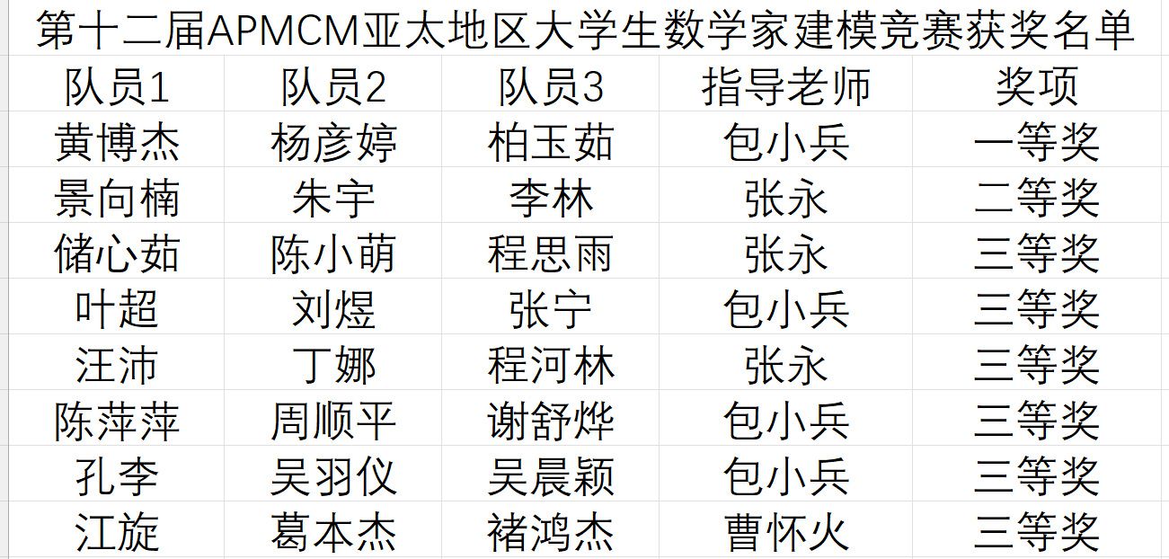 best365官网从2022年10月开始组织竞赛,经过选拔,选出了十二支队伍代表best365官网参加2022年APMCM亚太地区大学生数学建模竞赛。竞赛期间,在曹怀火教授、张永副教授、包小兵副教授的指导下,十二支参赛队均成功提交了英文参赛论文。
