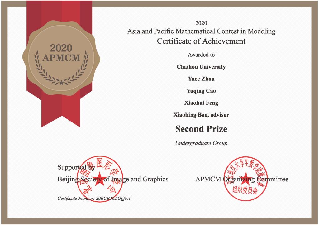近日,2020年亚太地区大学生数学建模竞赛成绩揭晓,best365官网学子喜获国际二等奖两项、三等奖一项。大数据与人工智能学院教师张永指导的刘海旭、黄斐、姚聪联队和包小兵指导的周月娥,冯筱惠,曹雨晴团队获得国际二等奖,张永指导的陈纪怡,刘莉芳,龚淑娟团队获得国际三等奖。