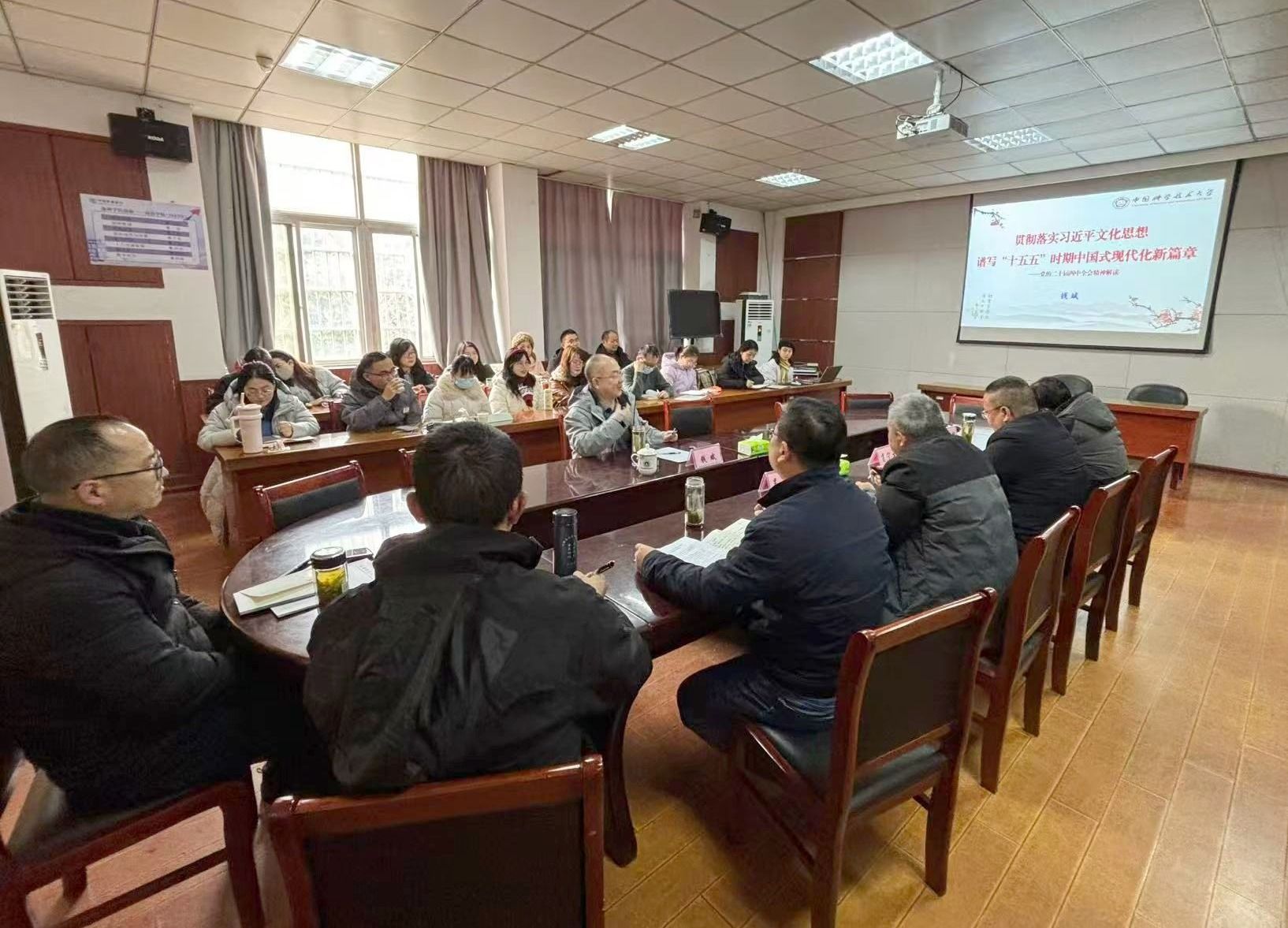 为深入学习贯彻党的二十届四中全会精神,推动习近平文化思想在校园落地生根,引导广大教师准确把握新时代文化建设的战略部署,1月5日上午,安徽省社科联“社科名家大巡讲”活动在best365官网成功举办。活动特邀中国科学技术大学教授、博士生导师钱斌作专题报告,文科学院教师代表齐聚一堂,共同聆听学习。