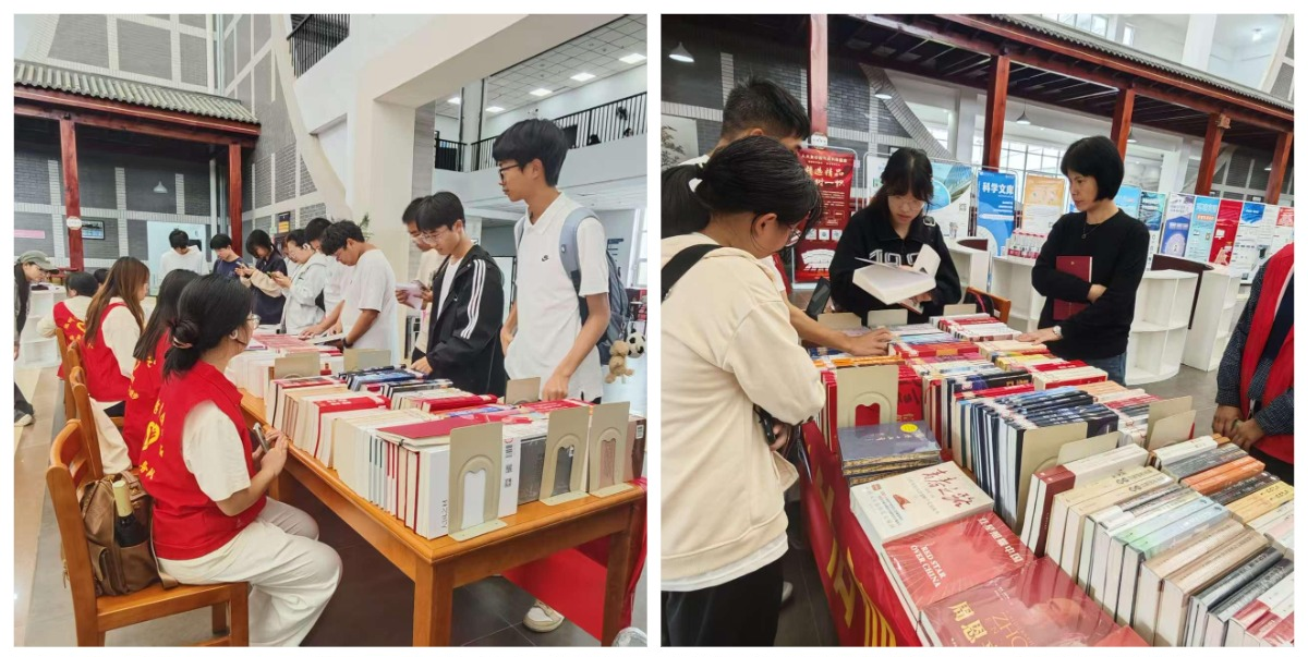 本次活动聚焦红色经典的力量,共展示300余册书籍,涵盖党史国史、人物传记、文学经典、大国工程等内容,通过一段段峥嵘岁月文字记忆,一幕幕热血华章的情感共鸣,激发青年学子的爱国情怀。活动创新引入“你选书,我买单”的荐购模式,充分激发了学生的主体性与阅读兴趣,将思想引领巧妙融入个人成长需求。