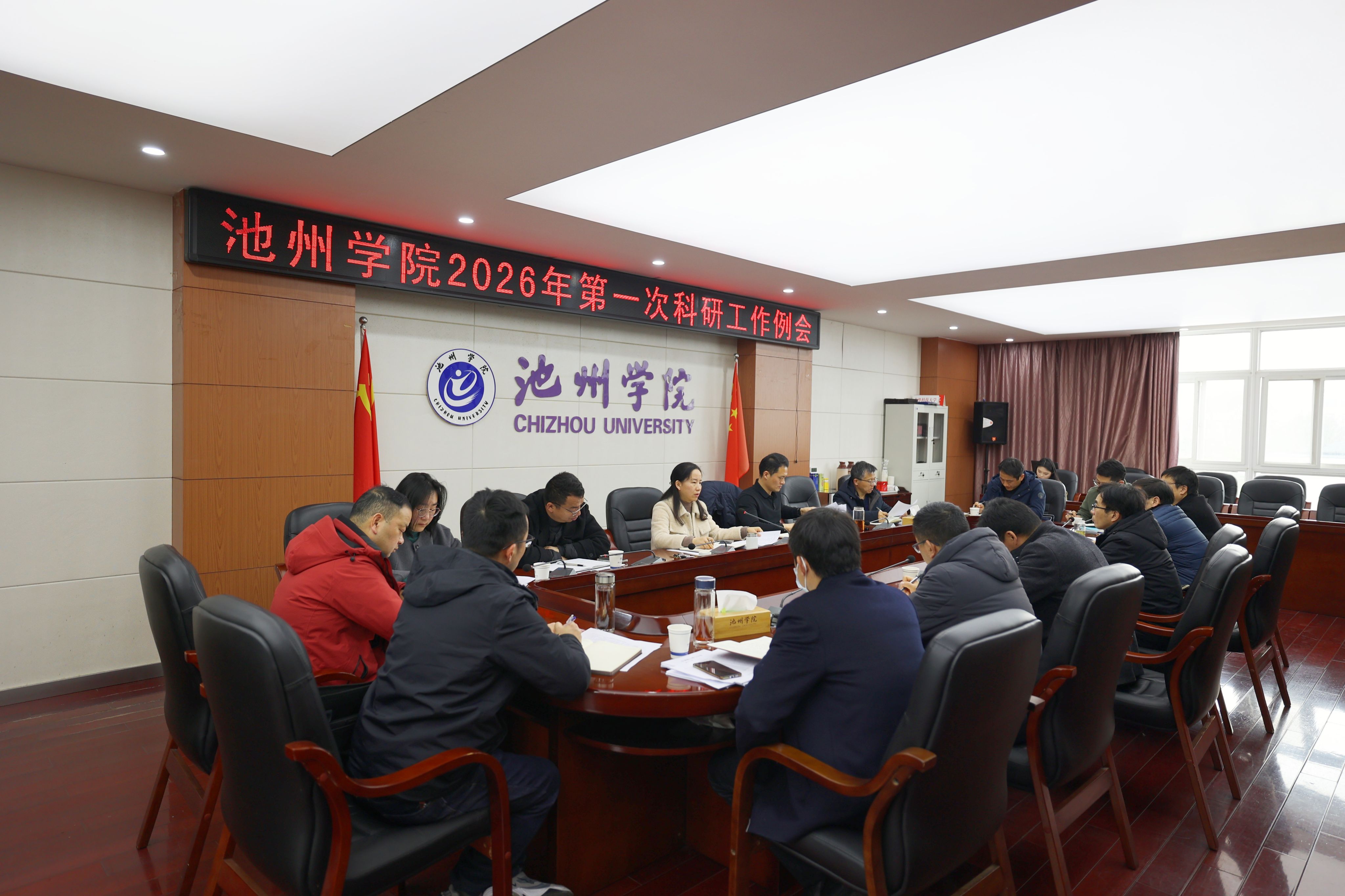 会上,科研处相关负责人围绕硕士学位点建设、高层次基金项目申报、科研经费规范管理、科研诚信建设等方面,对新学期科研工作进行了具体布置与安排。与会人员就学校“十五五”学科建设与科学研究专项规划、2026年度二级学院科研目标考核实施方案等进行了深入讨论与交流。