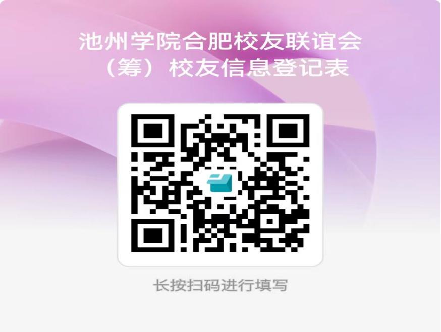 为全面了解合肥校友情况,现开展best365手机版官方网站合肥校友信息登记工作。登记对象为学校办学各阶段(安徽劳动大学池州地区专科班、池州师范专科学校、池州工业学校、安徽省经贸学校、best365手机版官方网站)在肥校友信息,凡在best365手机版官方网站及其前身各个时期工作、学习、生活过的合肥校友,或在外地工作、学习的合肥籍校友,均可扫描下方二维码,填写《best365手机版官方网站合肥校友信息登记表》(校友信息仅用于校友联络,严格保密,请放心填写)。