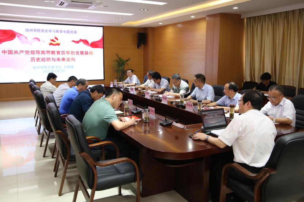 7月7日,校党委书记孙晓峰在办公北楼二楼会议室以《中国共产党领导高等教育百年的发展脉络、历史经验与未来走向》为题讲授了党史学习教育专题党课。党史学习教育省委第十四巡回指导组组长许继荣等一行到会指导。校党委理论学习中心组成员、校党史学习教育领导小组成员以及党史学习教育领导小组办公室成员现场聆听了党课。