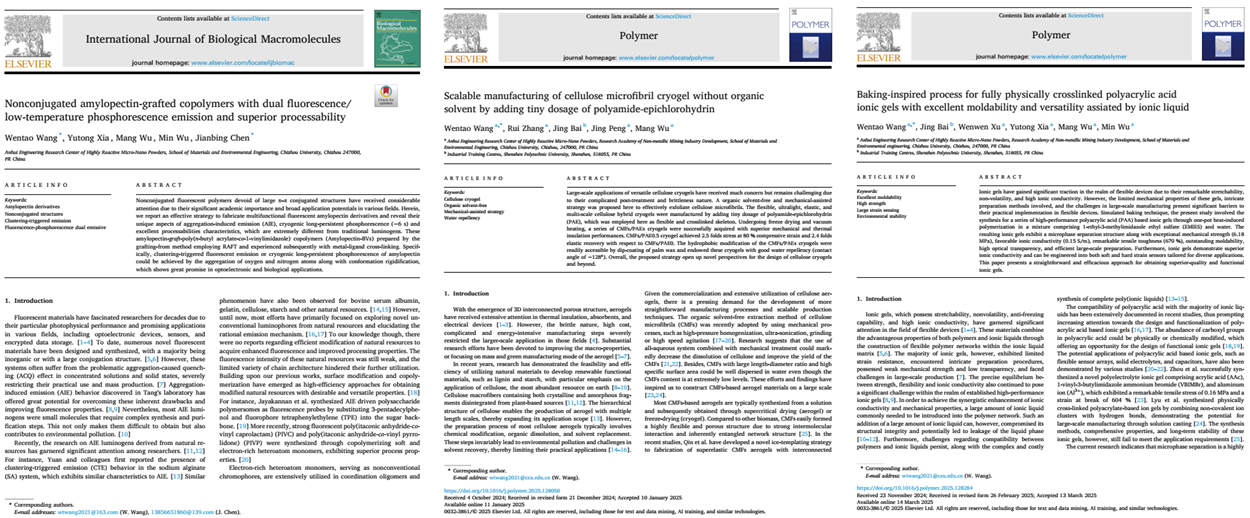 王文韬以best365手机版官方网站第一单位第一作者在中科院一区International Journal of Biological Macromolecules和中科院二区Polymer上连续发表三篇高水平科研论文