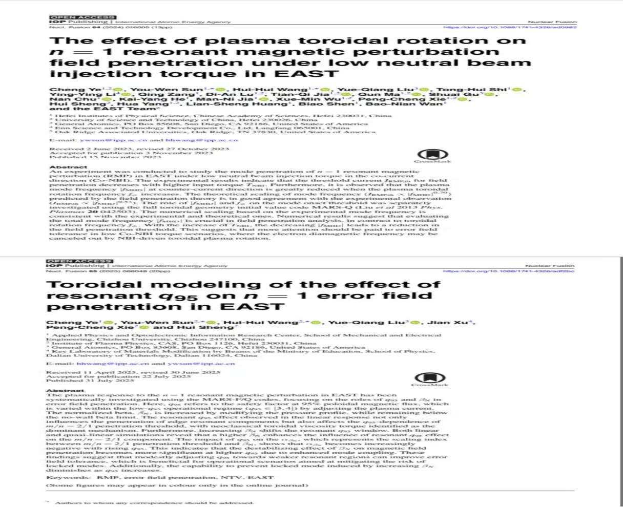 跑步是叶程的业余爱好,他也总爱用跑步类比科研:“二者都是一场马拉松,得耐住性子坚持。”面对实验失败或模拟结果不理想,他从不气馁,“失败就是告诉你哪条路走不通,排除错误选项,就离正确答案更近了”。这种韧性,让他在《Nuclear Fusion》等顶级期刊发表多篇一区论文时,依旧保持着最初的纯粹。“科研最珍贵的是好奇心,就像小时候拆玩具,总想知道里面的构造”。