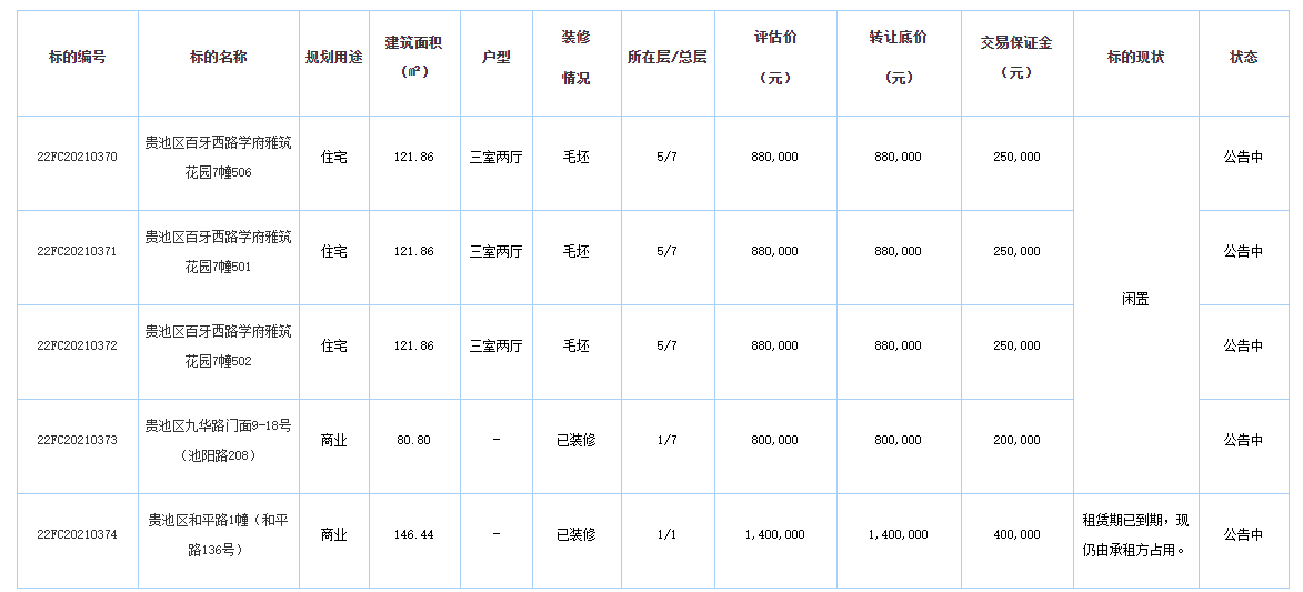 池州市贵池区百牙西路学府雅筑花园小区3套住宅房产、池阳路及和平路2套商业房产转让项目的相关公告信息以安徽长江产权交易所网站(www.ccjex.com)发布的相关信息为准。