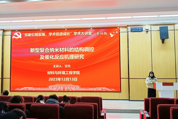 12月13日下午,材料与环境工程学院“党建引领发展,学术促进成长”学术大讲堂第四期在学校公共教学楼东报告厅举行。材料与环境工程学院教工第三党支部甘杰博士以“政策引领,双碳行动”为题上了一堂精彩微党课,后以“新型复合纳米材料的结构调控及催化反应机理研究”为题作了学术报告。新能源材料与器件和材料化学专业师生参加报告会。