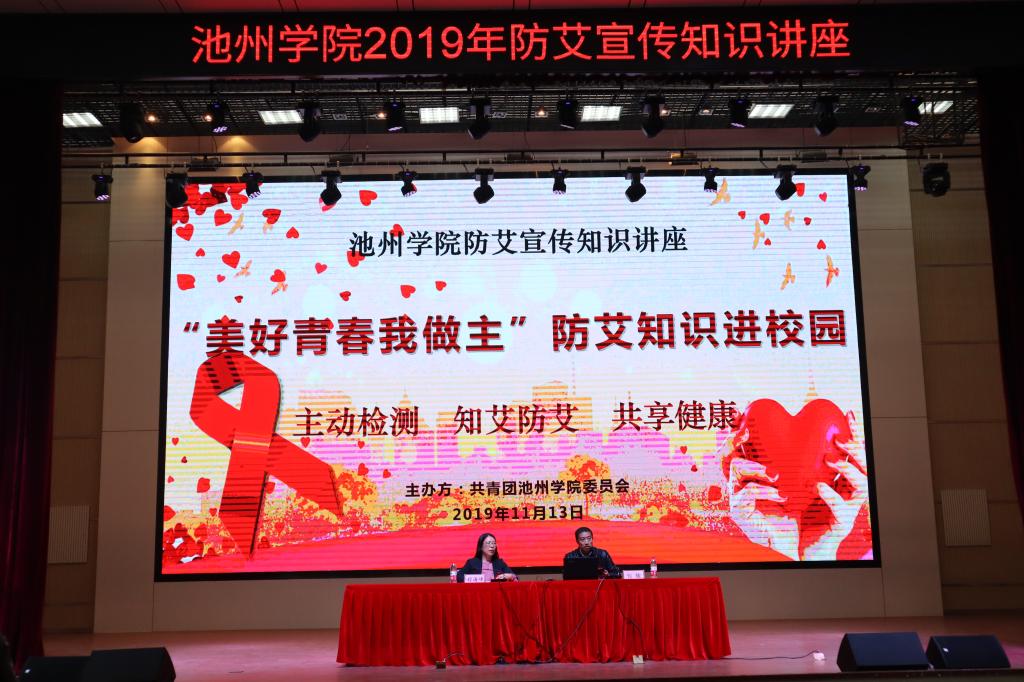 11月13日下午,为普及艾滋病防治知识,深入推进预防艾滋病宣传教育工作,共同营造“零艾”校园,增强同学们对艾滋病的了解,帮助同学们树立健康的生活理念,校团委举办了“美好青春我做主——防艾知识进校园”主题讲座,邀请了池州市疾控中心传染病防治科科长包敏主讲,四百余名师生参加。