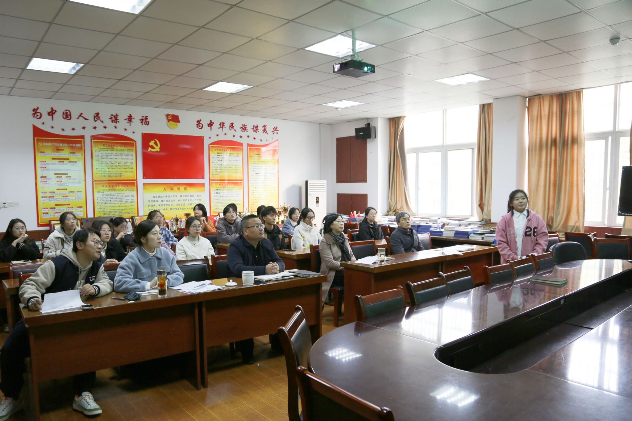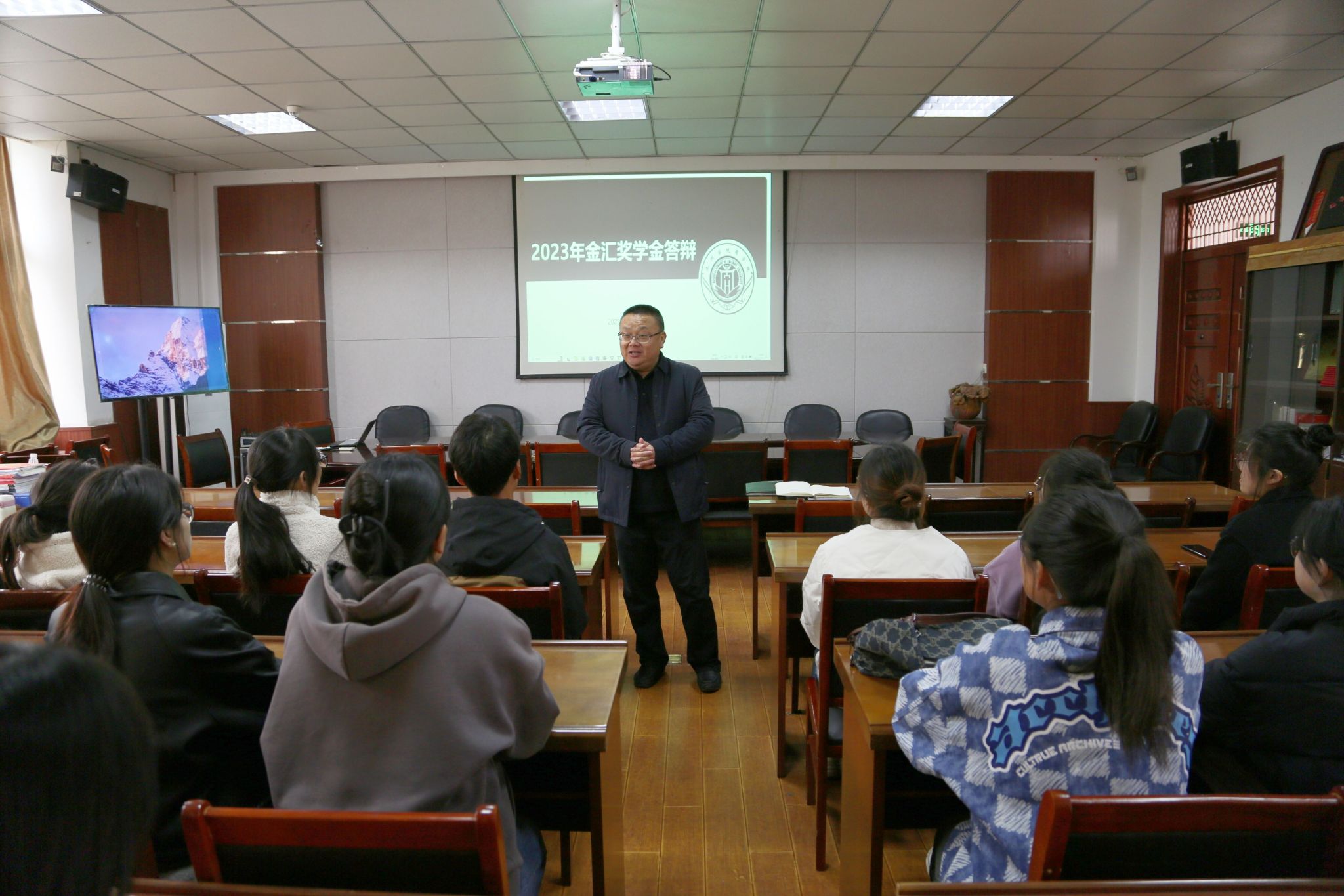 共23名符合评选条件的申请人参加现场答辩,申请人通过PPT展示的形式对家庭基本情况、在校期间的进步成长、未来的目标规划进行了汇报。现场评委进行提问和点评,并充分肯定他们在实践中坚持不懈的奋斗精神。答辩结束后,经过评选小组打分议定,决定推荐邱永婷等8名优秀同学作为“金汇奖学金”候选人报送到学校。