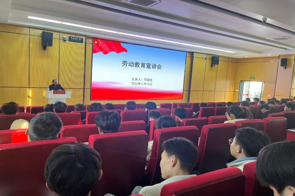 11月15日,机电工程学院联合校关工委、离退休工作处在公共教学楼西报告厅开展劳动教育宣讲会。校关工委常务副主任何国生应邀到会进行宣讲,学院2022级全体学生、学院学生党员和入党积极分子、相关班级辅导员、学生支部书记参加宣讲会。宣讲会由学院党委副书记余钰琪主持。