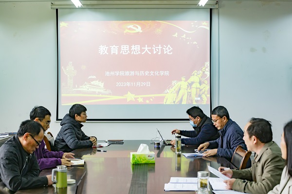 11月29日下午,旅游与历史文化学院开展以“统一思想,凝聚共识”为主题的教育思想大讨论,学院全体教师参会,会议由学院党委副书记杨祖勇主持。