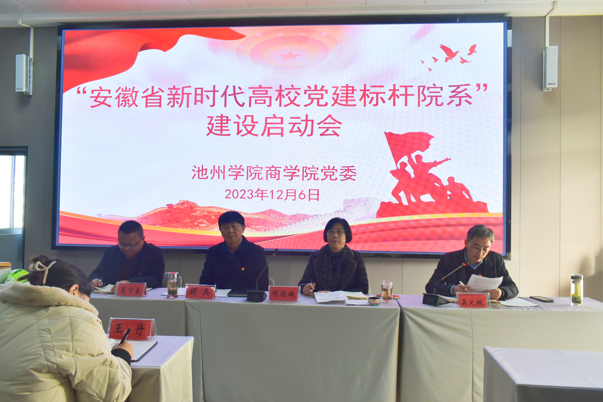 12月6日下午,商学院在博识北401教室召开“全省高校党建工作标杆院系”建设启动会。党委委员、组织部部长胡兵出席会议并讲话,全体教师以及学生党员代表参加会议,会议由商学院院长项桂娥主持。