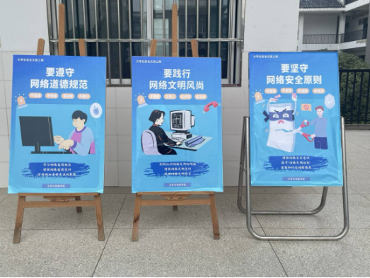 学院还通过强化安全信息宣传员队伍建设,制作“文明安全上网”宣传展板,推进文明安全知识进党课、融入黑板报评比、融入课堂思政等形式,不断规范大家的网络空间言行,提升大家的网络法律意识和安全防范意识。