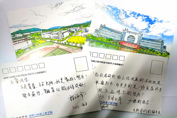 加油包里准备了文具、橙子、德芙巧克力以及定制的best365手机版官方网站明信片等物品,赠送橙子,是借助“橙”子的谐音预祝考研学子一战“橙”功、考研一定“橙”,德福巧克力寓意着旗开“德”胜。明信片上,学院领导、老师们写下了一句句真诚祝福语-----“须知少时凌云志,曾许人间第一流”“路漫漫其修远兮,吾将上下而求索”等,字里行间给予考研学子关怀和温暖。