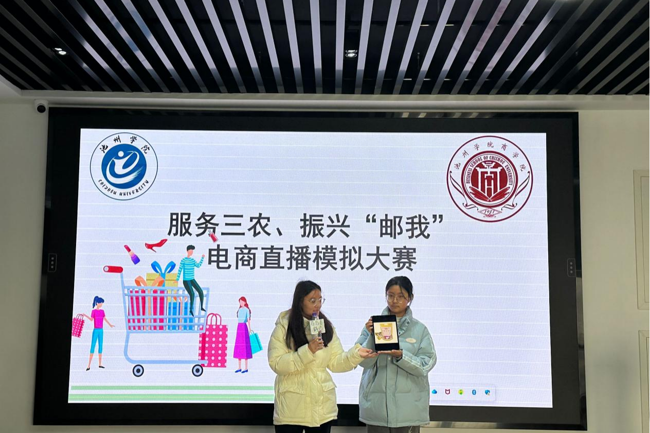 为进一步深化校企合作,提高学生创新创业能力。2023年12月29日,由中国邮政池州分公司和best365手机版官方网站商学院共同举办的“助力乡村振兴 邮我更精彩”电子商务模拟直播大赛在博识南403成功举办。经过校内报名和初选环节,共有14支队伍成功晋级决赛阶段。