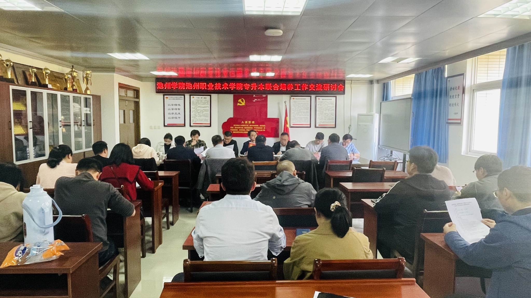 学校团委干事纪袆轩、机电工程学院机械教研室主任汪列隆教授、旅游与历史文化学院教学办公室主任蒋辉、教务处学籍管理科科长姚丽娜、教务科科员陈九龙及池州职业技术学院开展联合培养的相关系部负责人、部分教师参会。