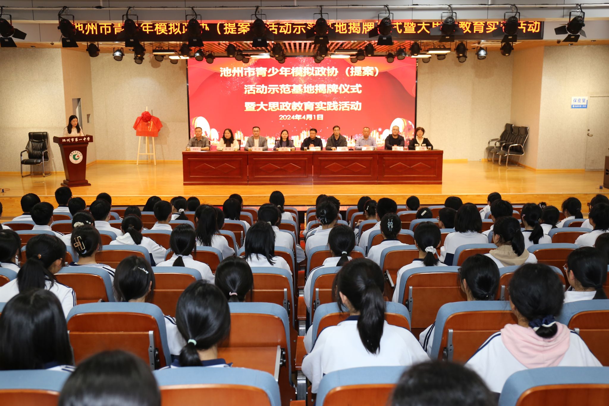 4月1日下午,马克思主义学院副院长鲍红信、校团委副书记刘昉一行前往池州一中参加池州市青少年模拟政协(提案)活动基地揭牌仪式。