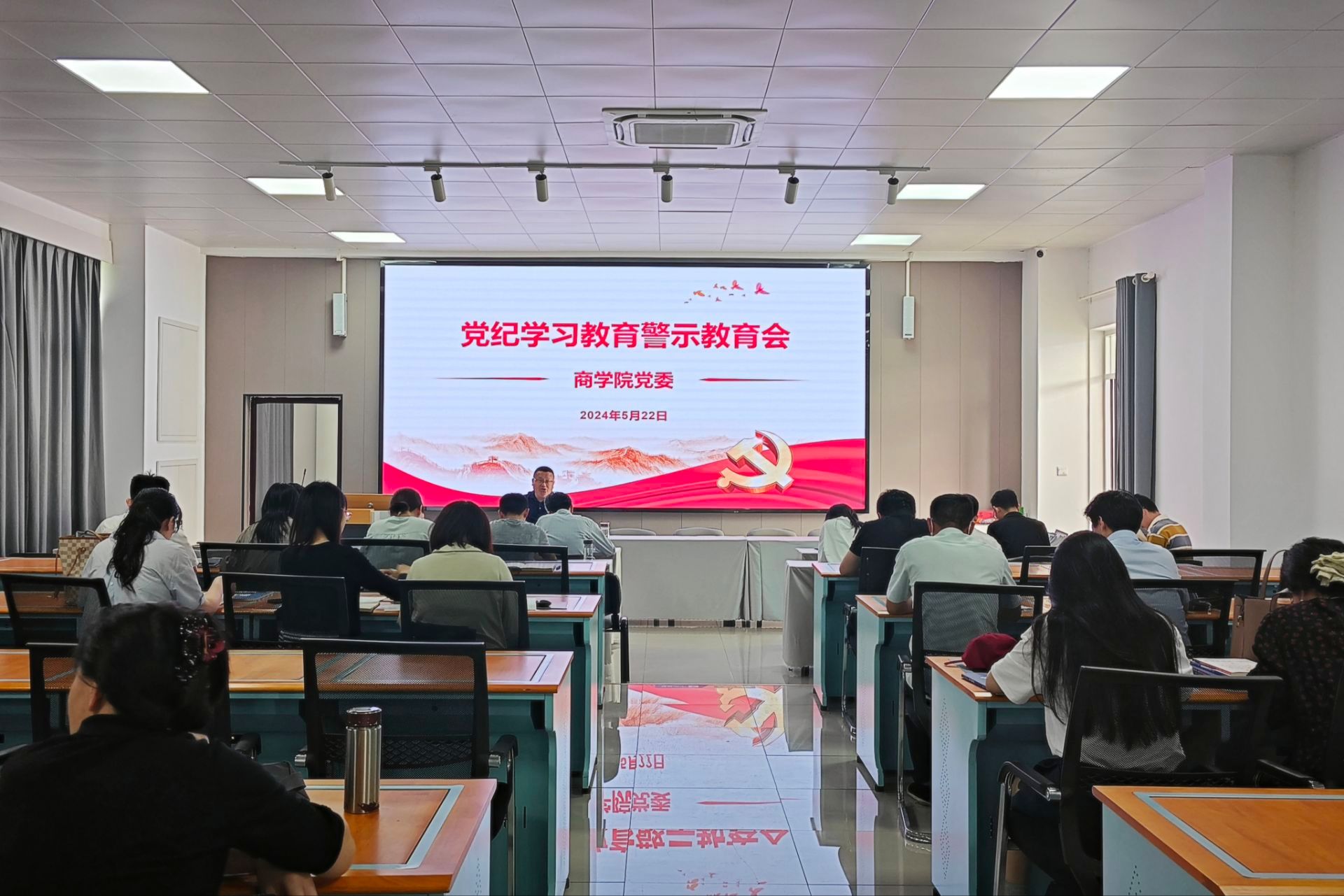 为贯彻落实党纪学习教育方案,切实增强师生遵规守纪的思想自觉和行动自觉,5月22日,商学院在博识北401会议室召开党纪学习教育“以案促改”警示教育大会,学院党委班子成员、各教研室主任、各党支部书记以及师生党员代表60余人参加了会议,会议由院党委书记肖宁生主持。