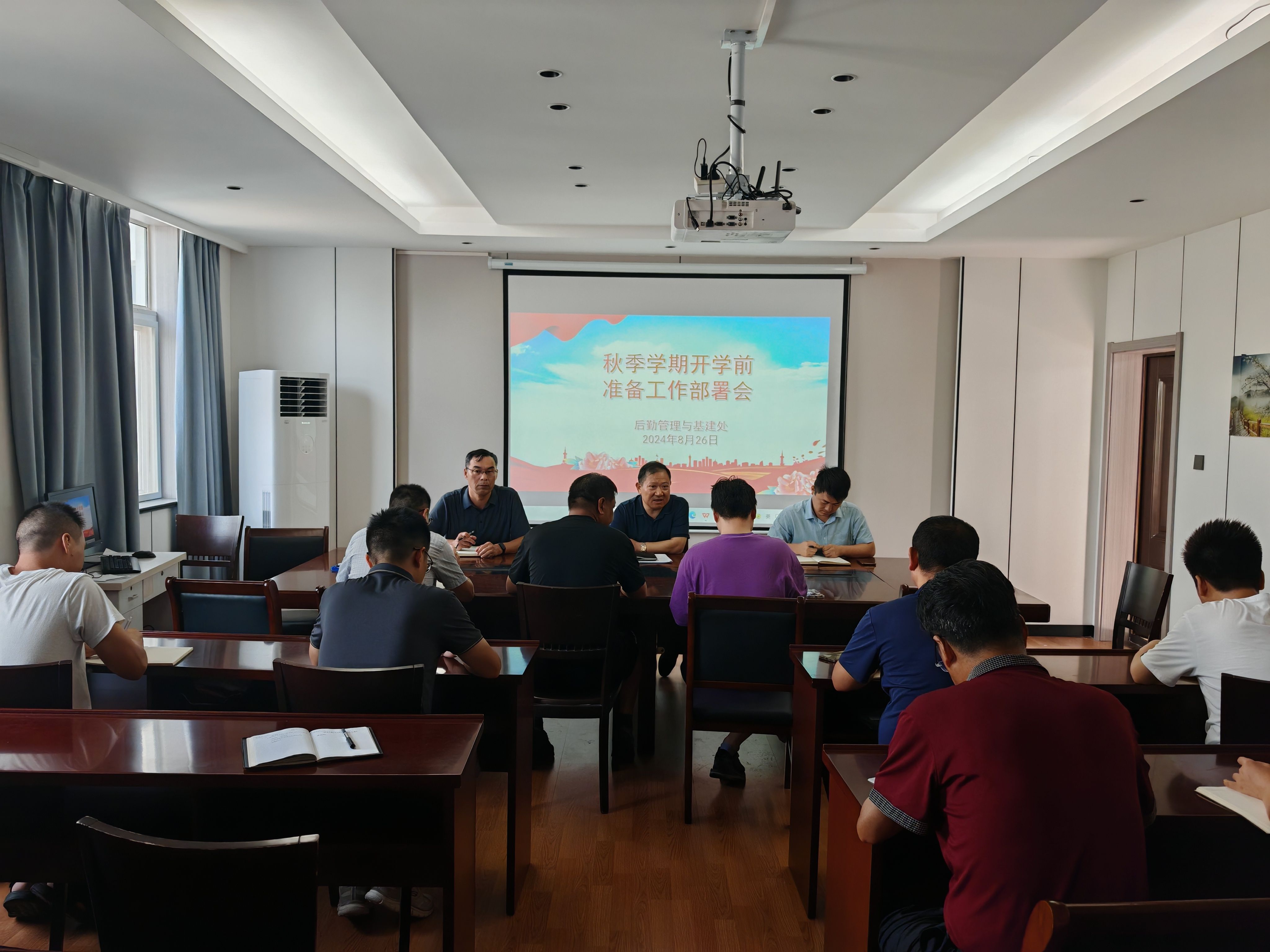 为做好新学期后勤服务与保障,8月26日上午,后勤管理与基建处在会议室召开全体职工大会,部署秋季学期开学后勤保障准备工作。会议由处长张甫彬主持。
