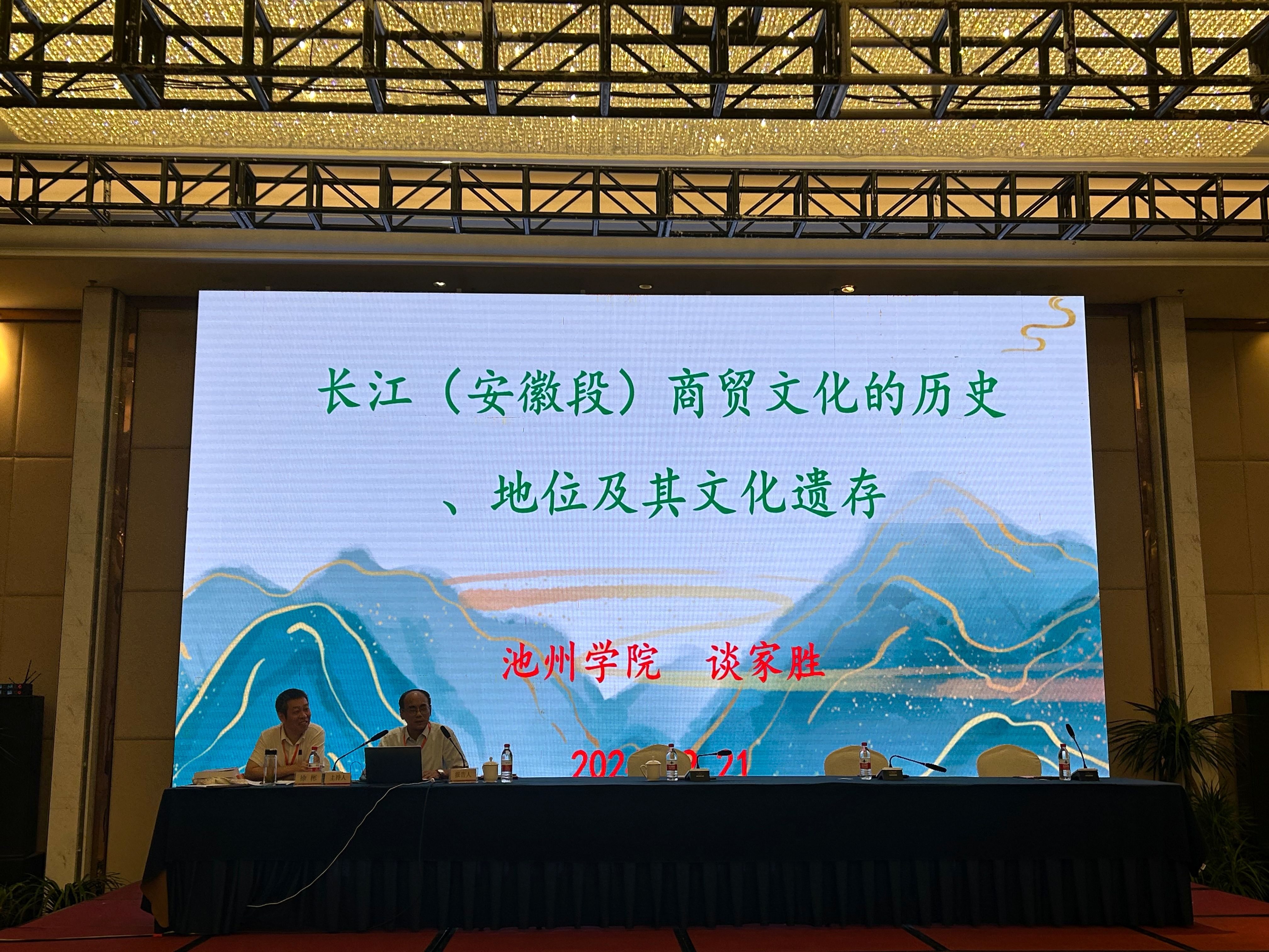 大会报告阶段,皖南民俗文化与旅游发展研究院院长谈家胜教授作了《长江(安徽段)商贸文化的历史、地位及其文化遗存》的主题发言,梳理了皖江区域自先秦至近代的商贸文化历史、揭示了其在长江商贸文化中的地位,并就现有的商贸文化遗存保护与文旅开发提出了具体建议。