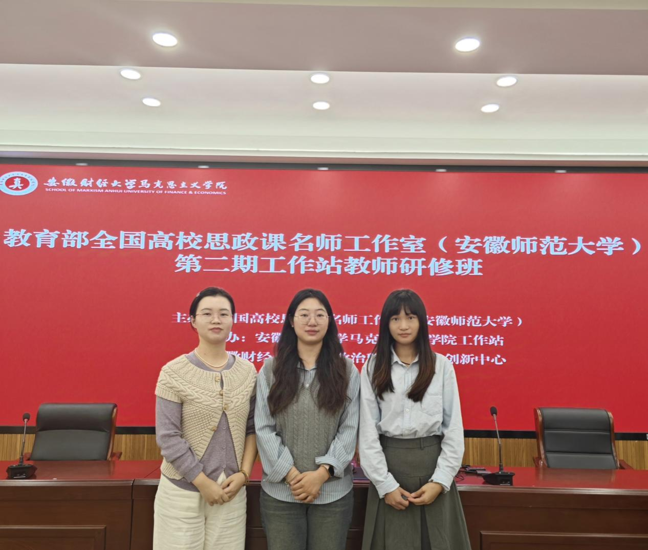 为加强马克思主义学院内涵建设,推进思政课教学改革创新,提升思政课教师的业务素质和能力,10月12日至14日,思政课教师孙琪、黄若男、张燕3人赴蚌埠市参加教育部全国高校思政课名师路丙辉工作室第二期教师研修班。