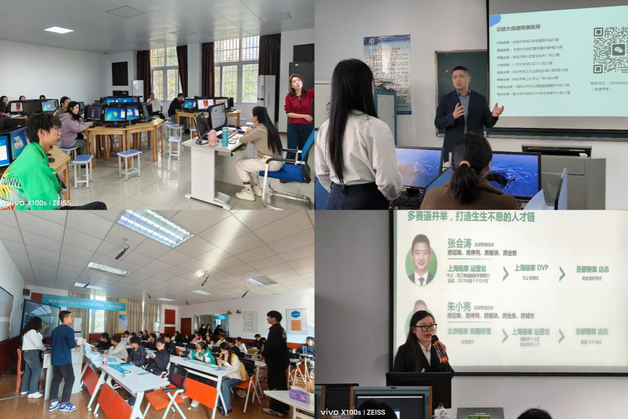 本次参会企业有深圳慧通、上海添健、上海链家、黄山壹贰叁农科文化创意有限公司、安徽邻几、宁波亚虎、安徽秀盟、安徽大森律师事务所等八家企业,提供与学院专业紧密相关岗位200余个。招聘会上,企业激情宣讲,让毕业生快速了解就业市场和公司环境,学生携带个人简历,与HR亲切交谈,了解用人单位需求,有的还进行了现场面试,现场气氛热烈。