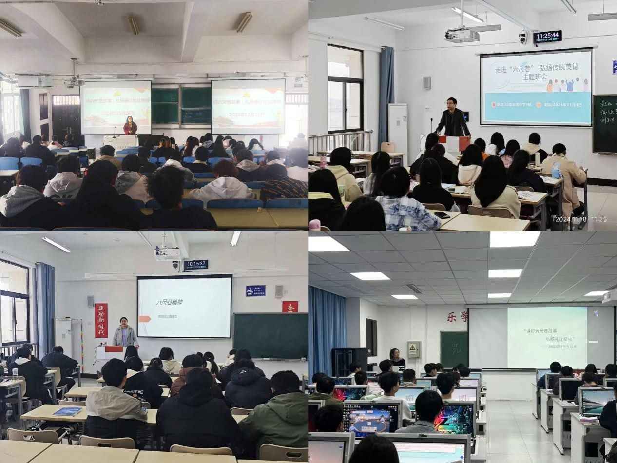 11月下旬,在六尺巷实地参观学习后,各团支部先后召开“讲好六尺巷故事、弘扬礼让精神”主题班会。班会上,各班团支书协助辅导员讲好六尺巷故事,将在六尺巷里所看所思所感分享给班级同学,帮助同学们充分理解六尺巷精神所蕴含的核心价值——宽容、和谐与谦让,号召大家在面对矛盾和冲突时要保持冷静和理智,以宽容的心态去对待他人,以谦让的态度去化解矛盾,在日常学习和生活中,学会宽容谦让,共同营造和谐的学习和生活环境。