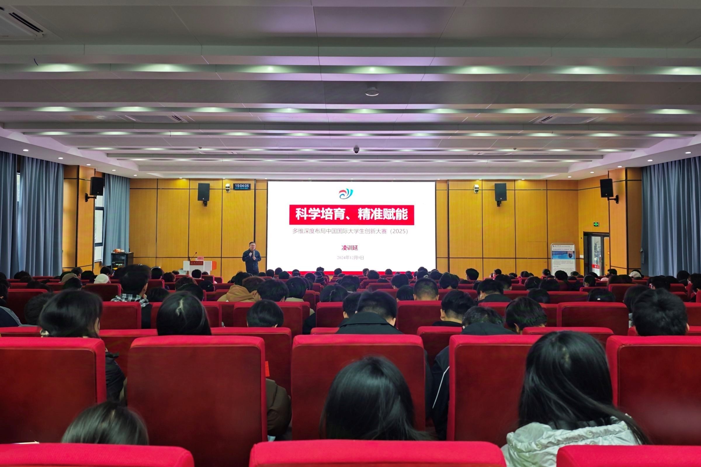 为贯彻落实习近平总书记给中国国际大学生创新大赛参赛学生代表重要回信精神,扎实做好2025年中国国际大学生创新大赛备赛工作,12月9日下午,校团委在公教楼西报告厅举办2025年中国国际大学生创新大赛培训会。安徽省高等学校计算机研究会创业就业专委会秘书长、中国国际大学生创新大赛专家库成员凌训延受邀担任本次培训会的主讲嘉宾,来自各二级学院的280余名师生代表参加培训。