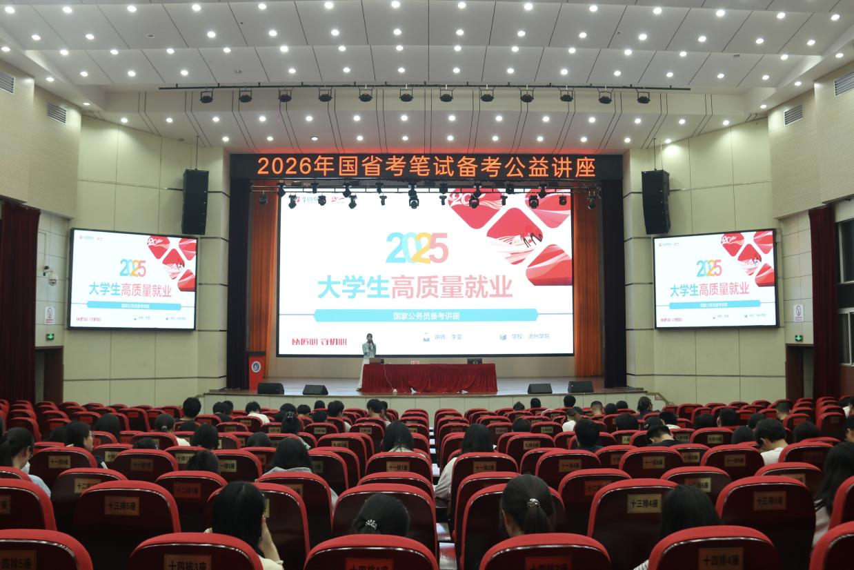 开展2026年国省考笔试备考讲座。5月15日,best365官网于博古礼堂组织开展2026年国省考笔试备考讲座。讲座以直观的图表和详实的数据,展现了历年国考招录比例、报名人数、各岗位竞争程度等关键信息,清晰地呈现出国考竞争态势的变化趋势,让同学们对当前的考公形势有了更为清晰和深刻的认识。针对考生普遍关注的解题技巧与时间管理问题,主讲人围绕资料分析速算技巧、判断推理逻辑思维训练等,分享行测各模块的快速解题方法,并针对申论归纳概括、综合分析、解决问题类题、应用写作、文章写作等题型,逐一拆解命题趋势、提炼高频考点,指导学生精准审题、高效整合材料要点,实现有效备考。此外,主讲人还就选调生与考公的区别进行讲解,进一步增强同学们的备考信心和动力。