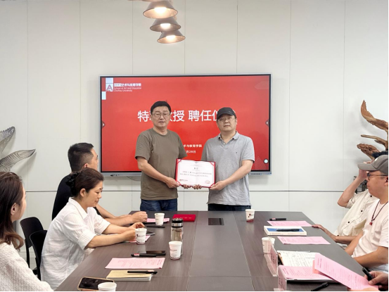 活动期间,王瑜向艺术与教育学院捐赠了其入选第五届中国线描艺术展作品《13号检票口》。魏鸿飞代表学院向王瑜颁发作品收藏证书以及艺术与教育学院特聘教授证书。