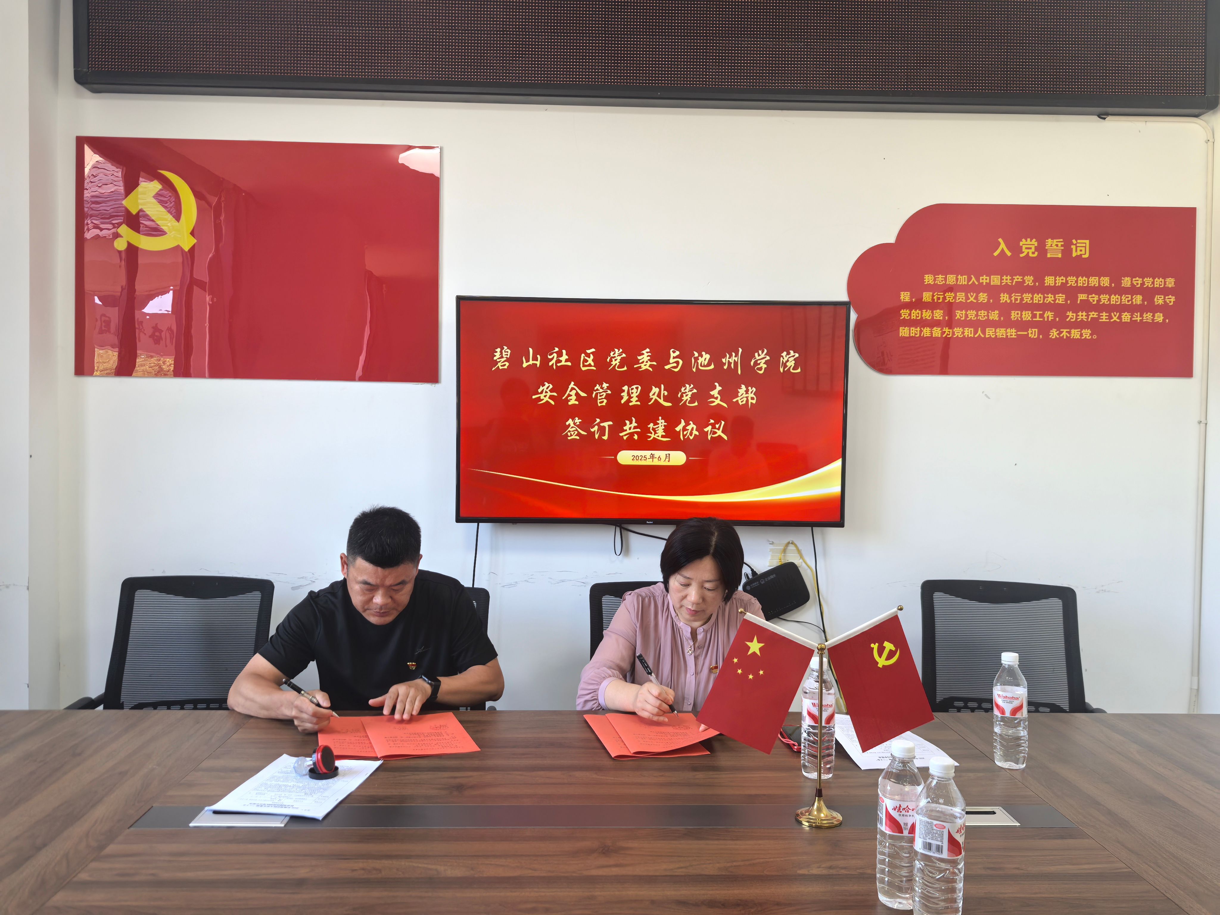 为进一步强化校园周边安全管理、营造和谐稳定的育人环境。6月6日上午,安全管理处党支部先后深入碧山、南星社区,开展了以“党建引领聚合力、校社共建护平安”为主题的安全共建主题党日活动,并在充分沟通交流基础上达成结对共识,签订共建协议书。