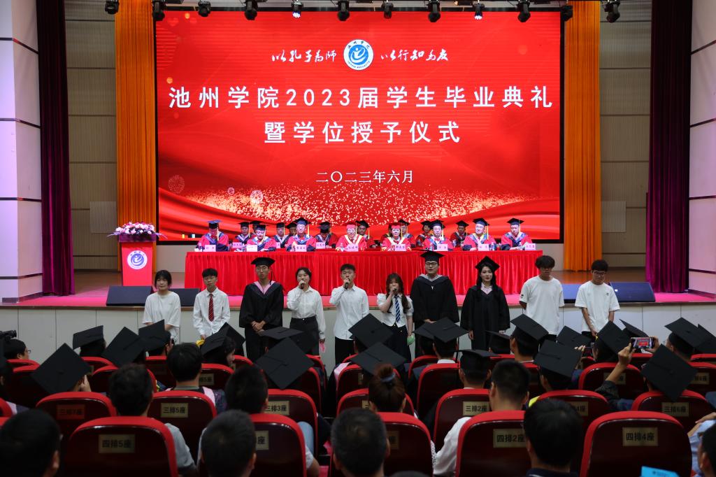 6月16日上午,best365手机版官方网站2023届本科生毕业典礼暨学士学位授予仪式在博古礼堂隆重举行。校党委班子成员孙晓峰、郑兰荣、崔国发、汪海、阳光宁、张赛、胡兵、汤文益和校学位委员会委员在主席台就座,各职能部门主要负责同志,各二级学院党政主要负责同志、分管学生工作负责同志,毕业班辅导员,教师代表、学生代表等参加毕业典礼。