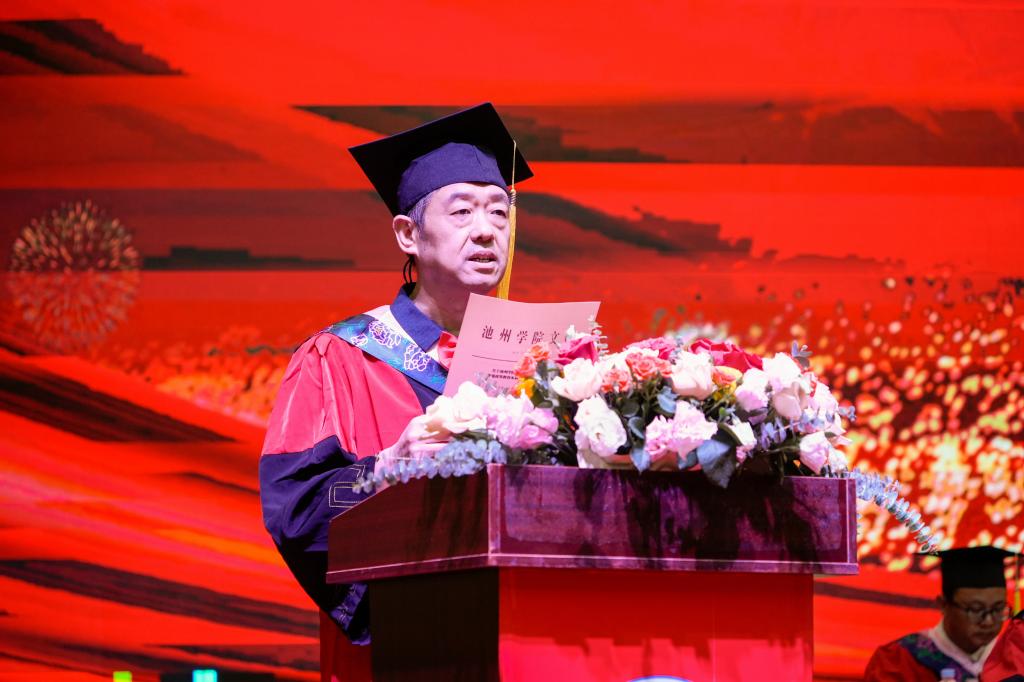 艺术与教育学院崔天辰同学代表毕业生发言,表达了对母校和老师的感激之情,希望大家努力成为不负时代、不负青春的强国栋梁。