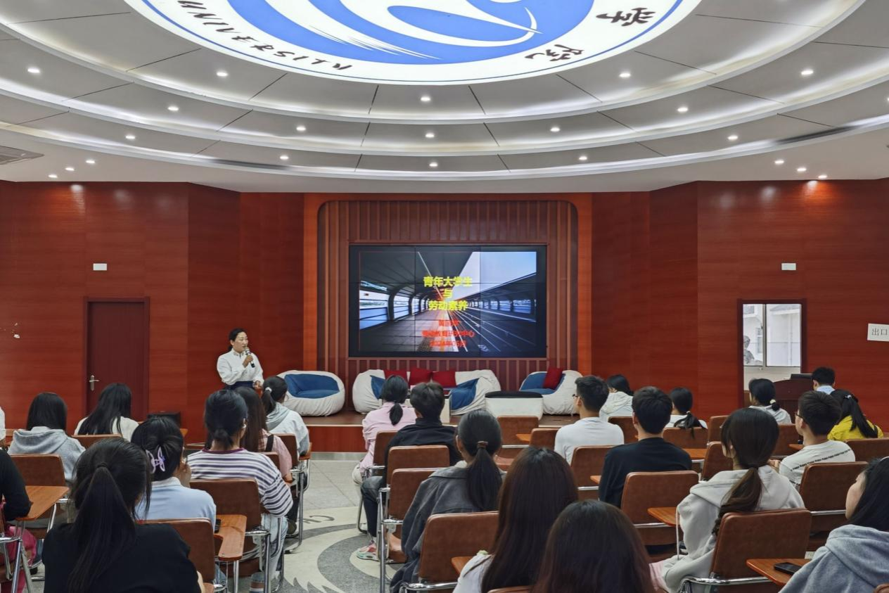 5月9日晚,best365手机版官方网站大学生成长沙龙“青春大讲堂”2024年第五期(总第六十二期)“致知识”在大学生活动中心举行。本期青春大讲堂以“青年大学生与劳动素养”为主题,邀请best365官网劳动教育研究中心主任黄国萍副教授作为主讲嘉宾,与学生代表进行面对面交流。