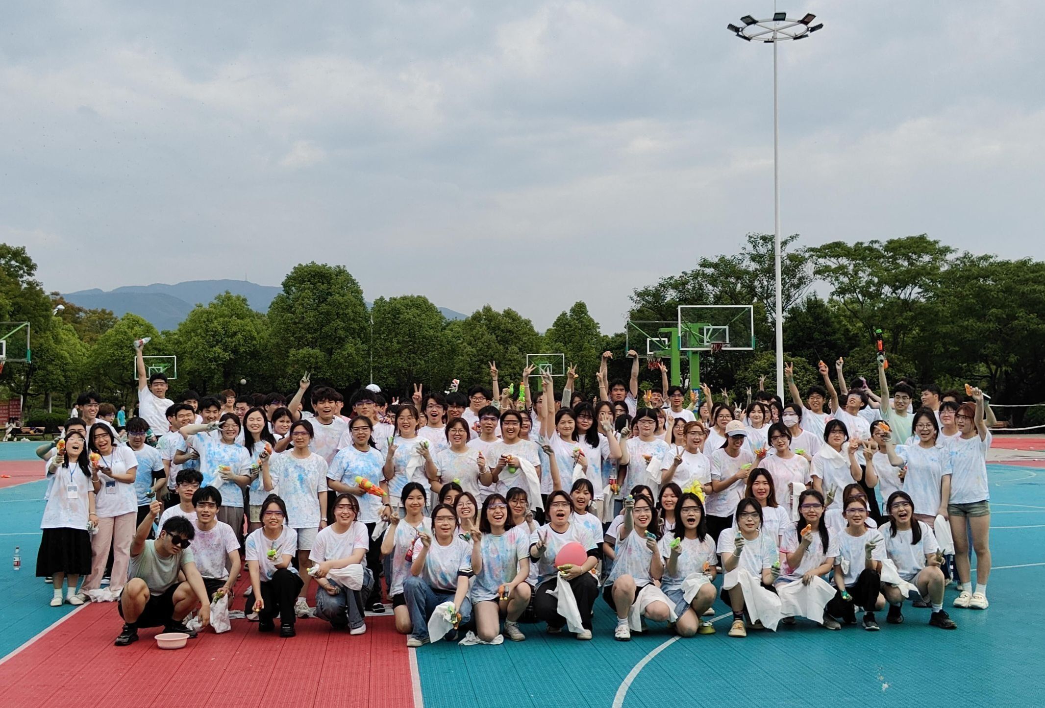 启动仪式后,开始了活动月系列活动中的品牌活动——彩虹大作战。同学们在广场上激情四射地放飞自我,宣泄压力,感受友爱,展现了青春活力。