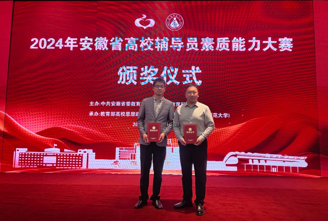 5月11日,由中共安徽省委教育工委主办,教育部高校思想政治工作队伍培训研修中心(安徽师范大学)承办的2024年安徽省高校辅导员素质能力大赛圆满结束,best365官网专职辅导员陈周庆、李维岩两位老师在大赛中喜获三等奖,实现了学校在该项赛事上的新突破。