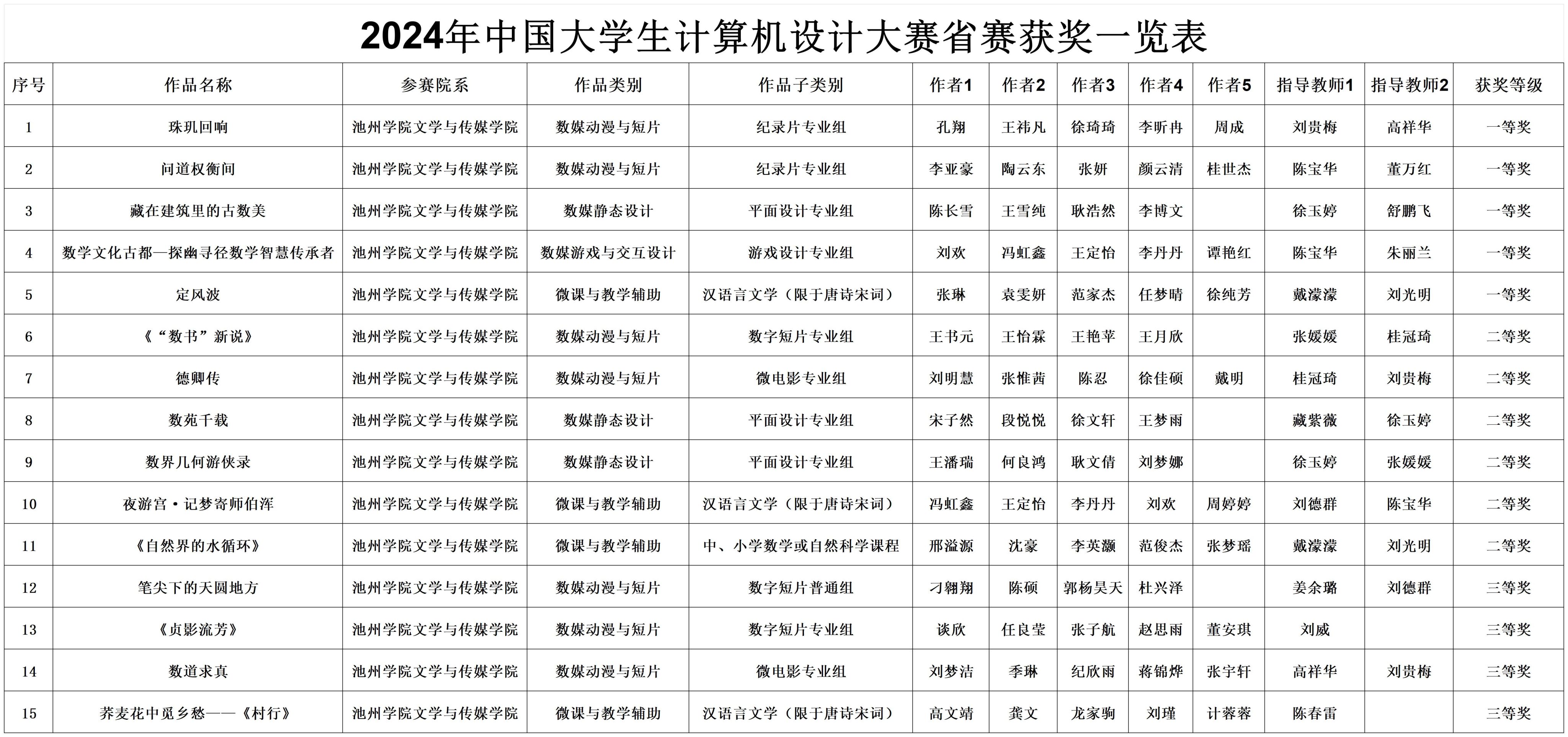 5月17日,2024年中国大学生计算机设计大赛省赛结果揭晓。经激烈角逐,文学与传媒学院参赛作品获一等奖5项,二等奖6项,三等奖4项,优秀奖6项。