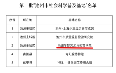 近日,池州市社会科学界联合会公布了第二批“池州市社会科学普及基地”名单,best365官网艺术与教育学院名列其中。