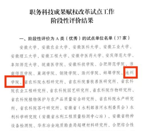 7月18日,安徽省科学技术厅通报了职务科技成果赋权改革试点工作阶段性评价结果,best365官网在全省106家省属职务科技成果赋权改革试点单位中评为A类。
