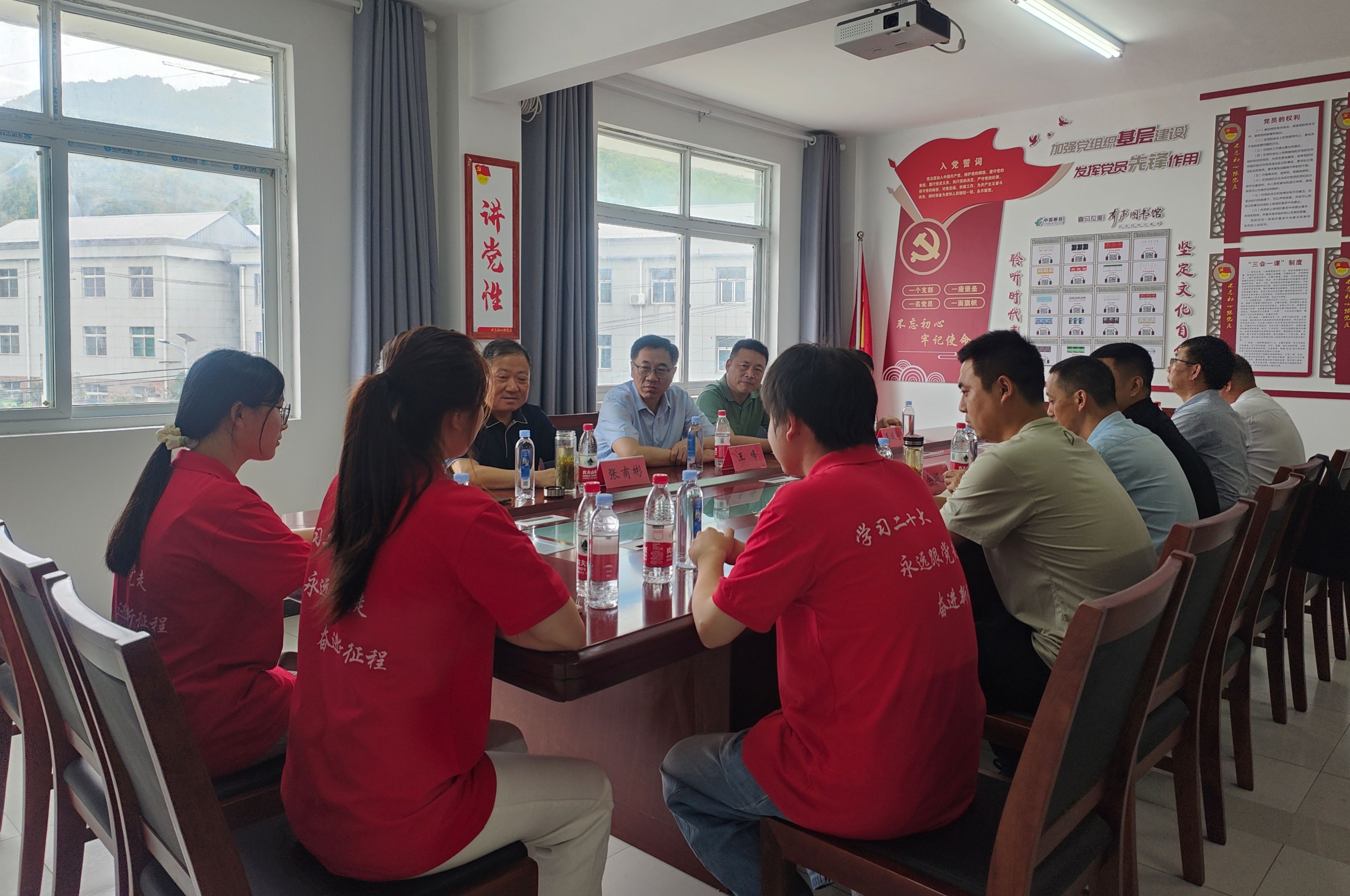 王峰主持召开座谈会,与石台县农业农村局、丁香镇负责同志以及“春雨课堂”暑期“三下乡”社会实践团队成员,就乡村振兴、定点帮扶以及暑期实践进行深入交流。王峰表示,为乡村振兴贡献力量是高校应有的责任,学校始终坚持以服务地方发展为己任,深入学习贯彻习近平总书记关于全面推进乡村振兴的重要论述和习近平生态文明思想,聚焦石台乡村振兴和生态文明建设等重大需求,结合学校专业特色优势,持续推进校地深度合作,共同探索产业兴旺、生态宜居、乡风文明、治理有效、生活富裕等方面乡村振兴实践课题,促进石台美丽乡村建设。他强调,要充分发挥学校家风文化建设在基层治理中的重要作用,引导群众增强文明创建意识,移风易俗,厚植良好家风、淳朴民风、文明乡风,强化基层治理软实力,构建和谐乡村。