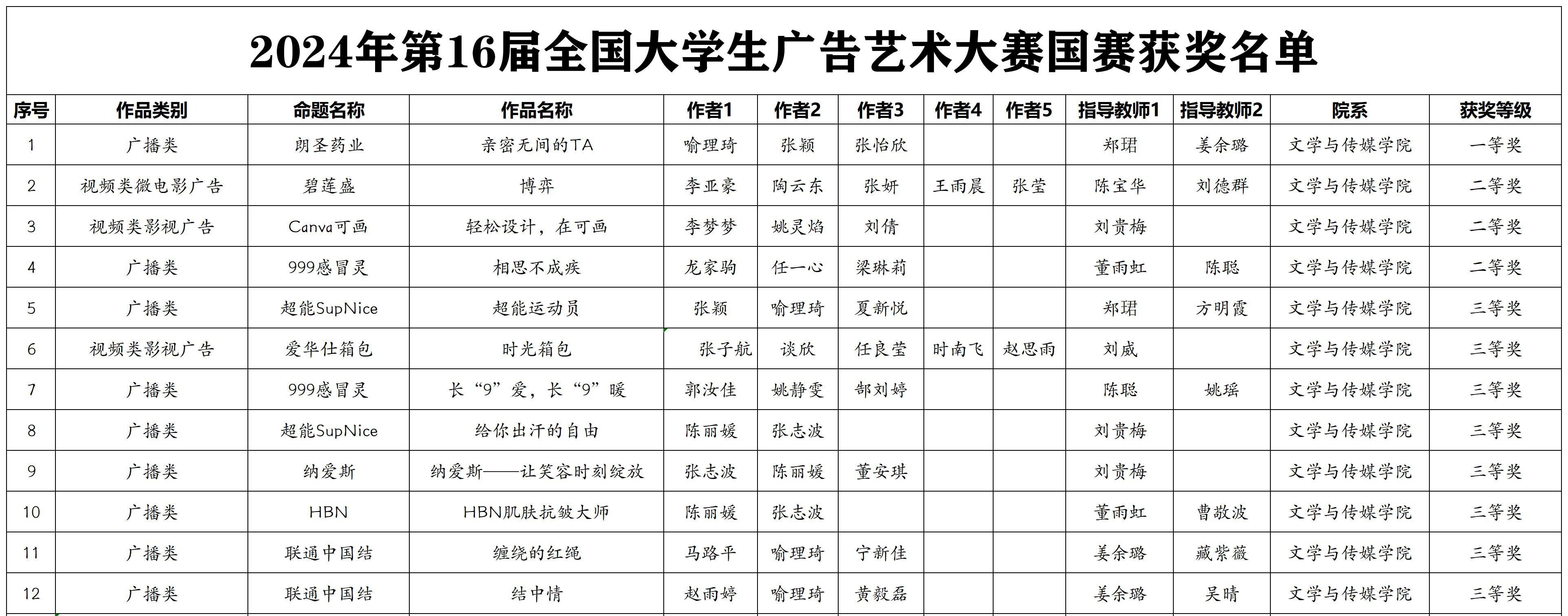 9月10日,2024年第16届全国大学生广告艺术大赛落下帷幕。best365官网文学与传媒学院学子参赛作品获奖颇丰,其中获国家级A类赛事一等奖1项、二等奖3项、三等奖8项、优秀奖23项,同时学校荣获国家级优秀组织院校奖。这也是best365官网连续4年蝉联该项赛事一等奖和连续5年荣获优秀组织奖。