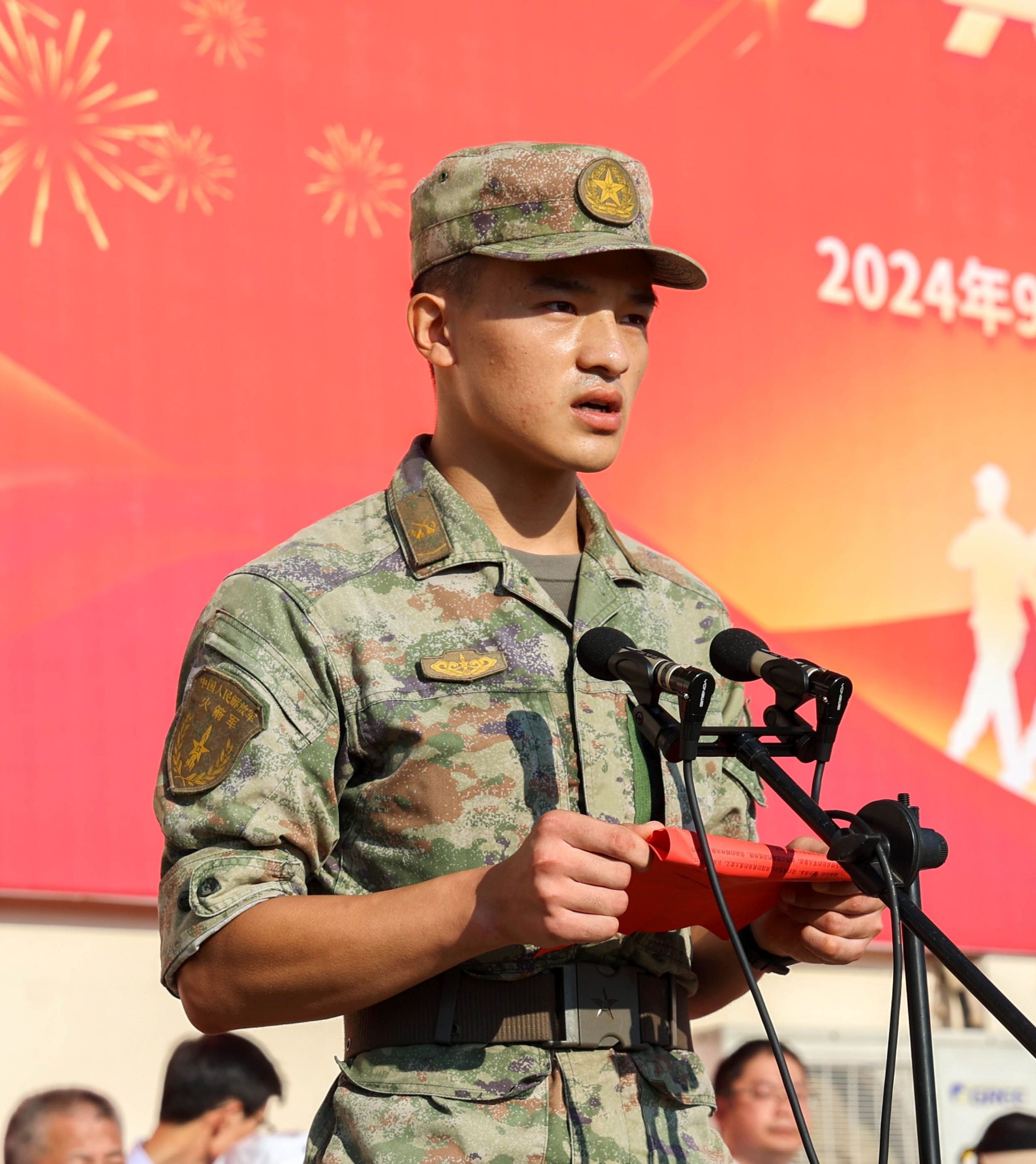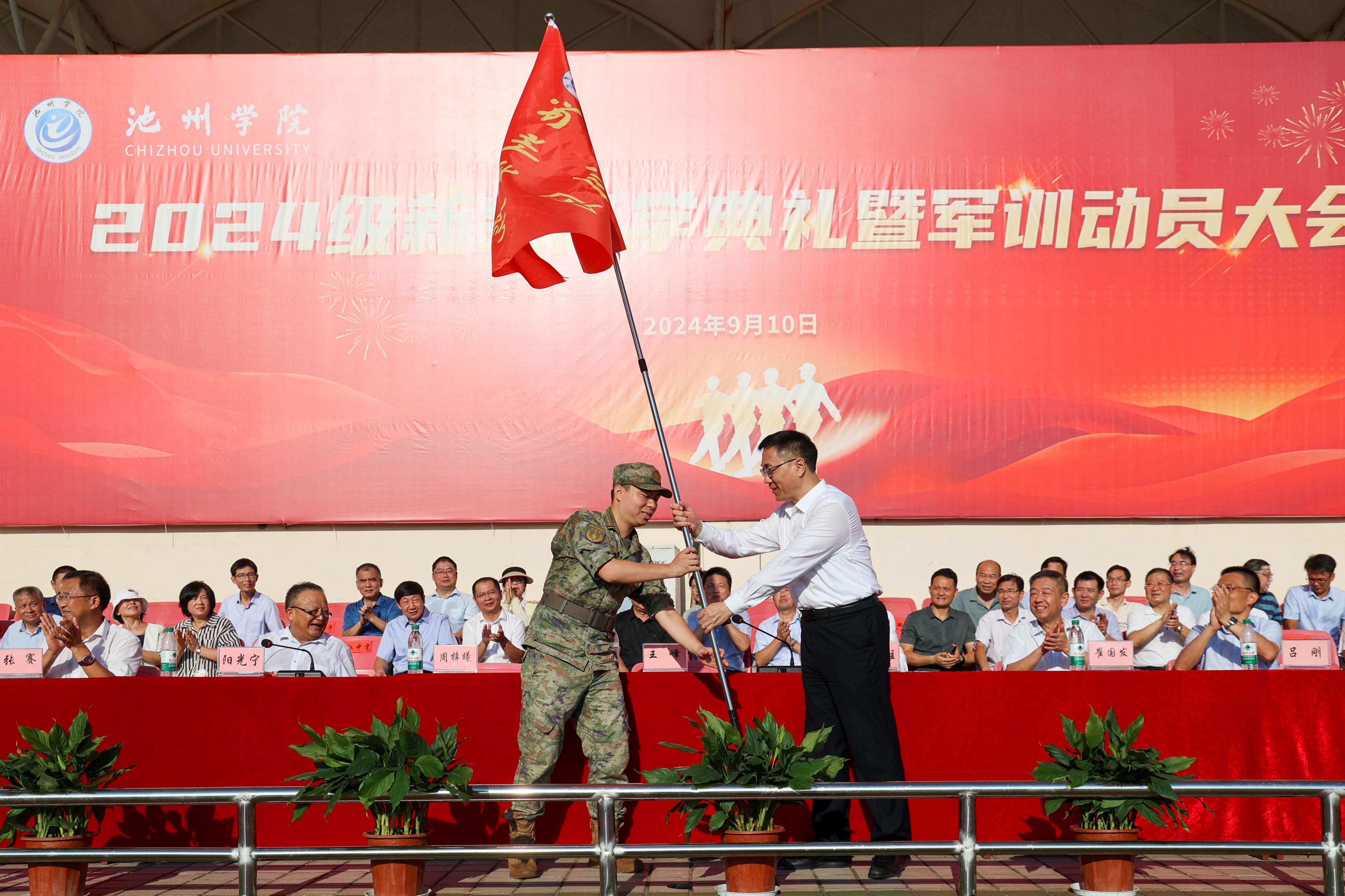 王先柱做军训动员讲话。他代表学校向承训部队全体官兵表示感谢,向2024级全体新生表示欢迎。他指出,best365手机版官方网站建校47年来,一代代的池院人始终坚守着“为党育人,为国育才”的使命担当,数十年如一日矢志不渝、笃定前行,为池州乃至安徽省经济社会发展作出了突出贡献。希望2024级新生要志存高远,在胸怀家国中勇担使命。赓续池院精神传统,树立高远志向、坚定成才方向,激励自己为强国建设而不断前进。要自强不息,在追求卓越中劈波斩浪。始终迎难而上,以积极、健康、向上的心态应对成长中的困惑,磨炼应对变革时代的意志品质,展现“如初春、如朝日”的朝气锐气,为人生成长积蓄更强大的力量。要团结奉献,在互帮互助中共同进步。学会包容互助,以友谊致敬青春,用奋斗拥抱理想,在博采众长中拓宽成长的道路,在和而不同中提升人生的高度,用奋斗和实践在池院书写最美好的青春岁月,为中国式现代化书写挺膺担当的青春篇章!