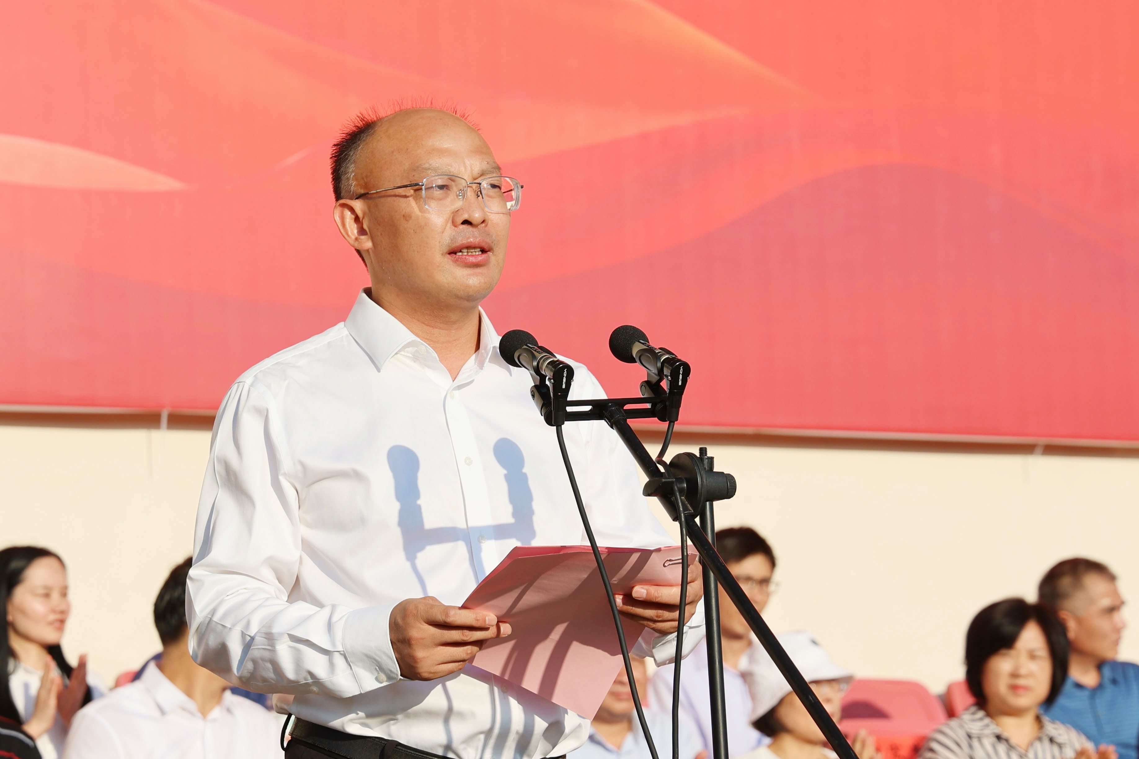 9月10日,学校举行2024级新生开学典礼暨军训动员大会。校党委书记王峰,校党委副书记、院长王先柱,校党委副书记崔国发,校党委委员、副院长阳光宁、吕刚、张赛,承训单位军训负责人周梓曦,校党委委员、组织部部长胡兵,校党委委员、宣传部部长汤文益出席大会。大会由阳光宁主持。