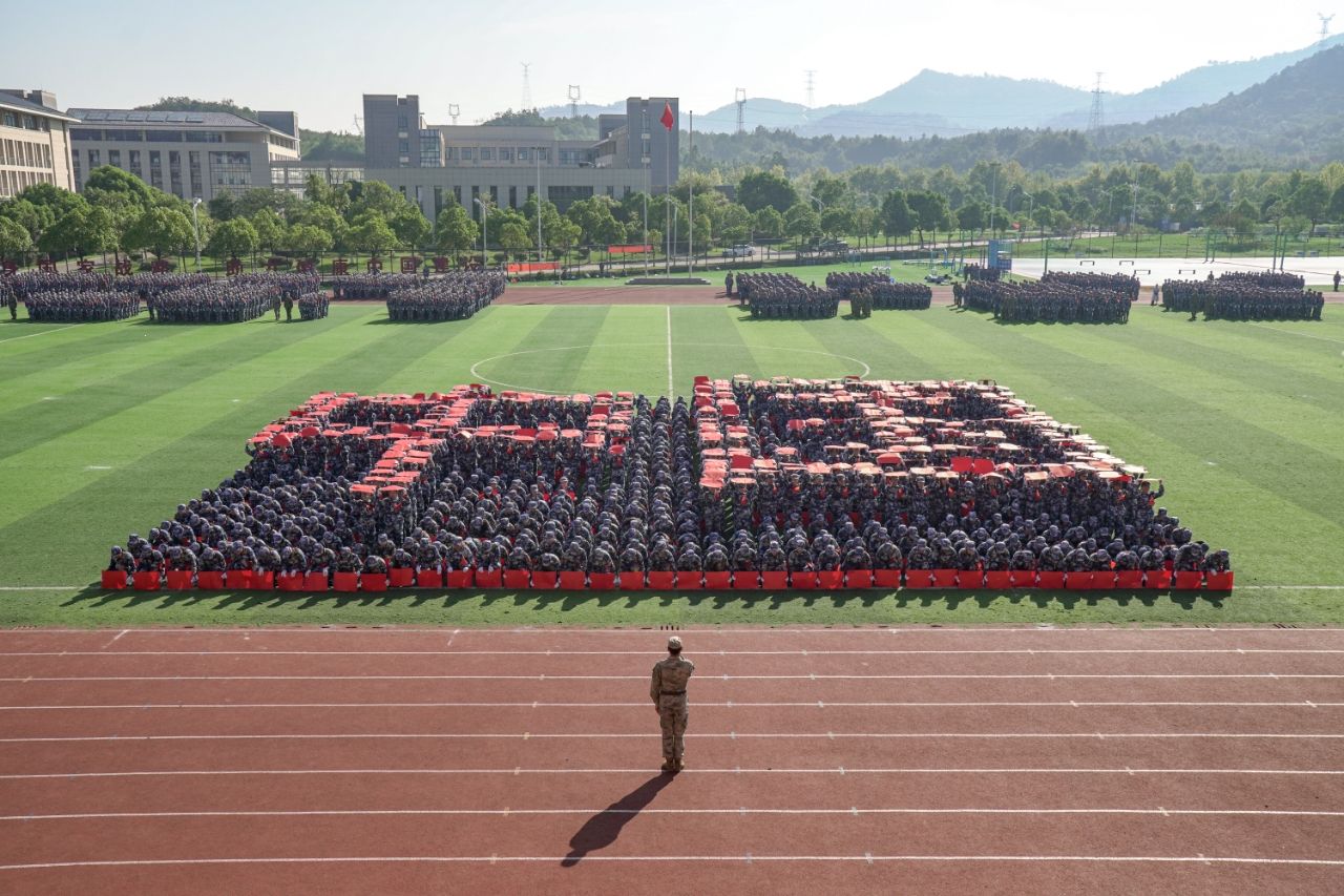 方阵不断变换呈现“请党放心、强国有我,我爱中国、我爱池院”等字样和图案,表达了青年学子青春向上、奋发有为的精神面貌。