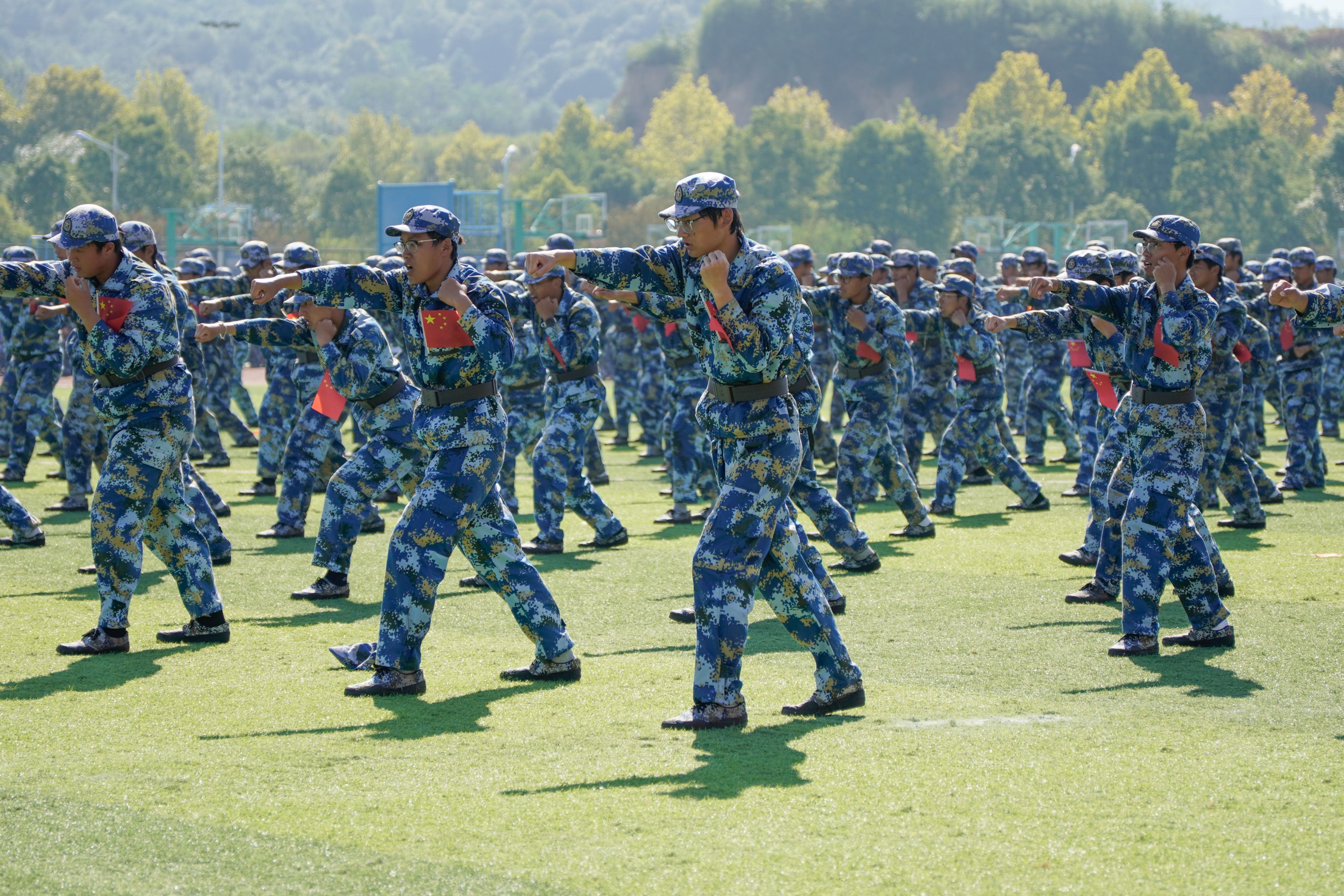 刺杀操、班组战术、匕首操、格斗术等精彩的表演将全场氛围推向高潮,一招一式彰显年少风采,刚健有力尽显学子本色,激发出学生骨子中心系家国、砥砺前行的青春激情。