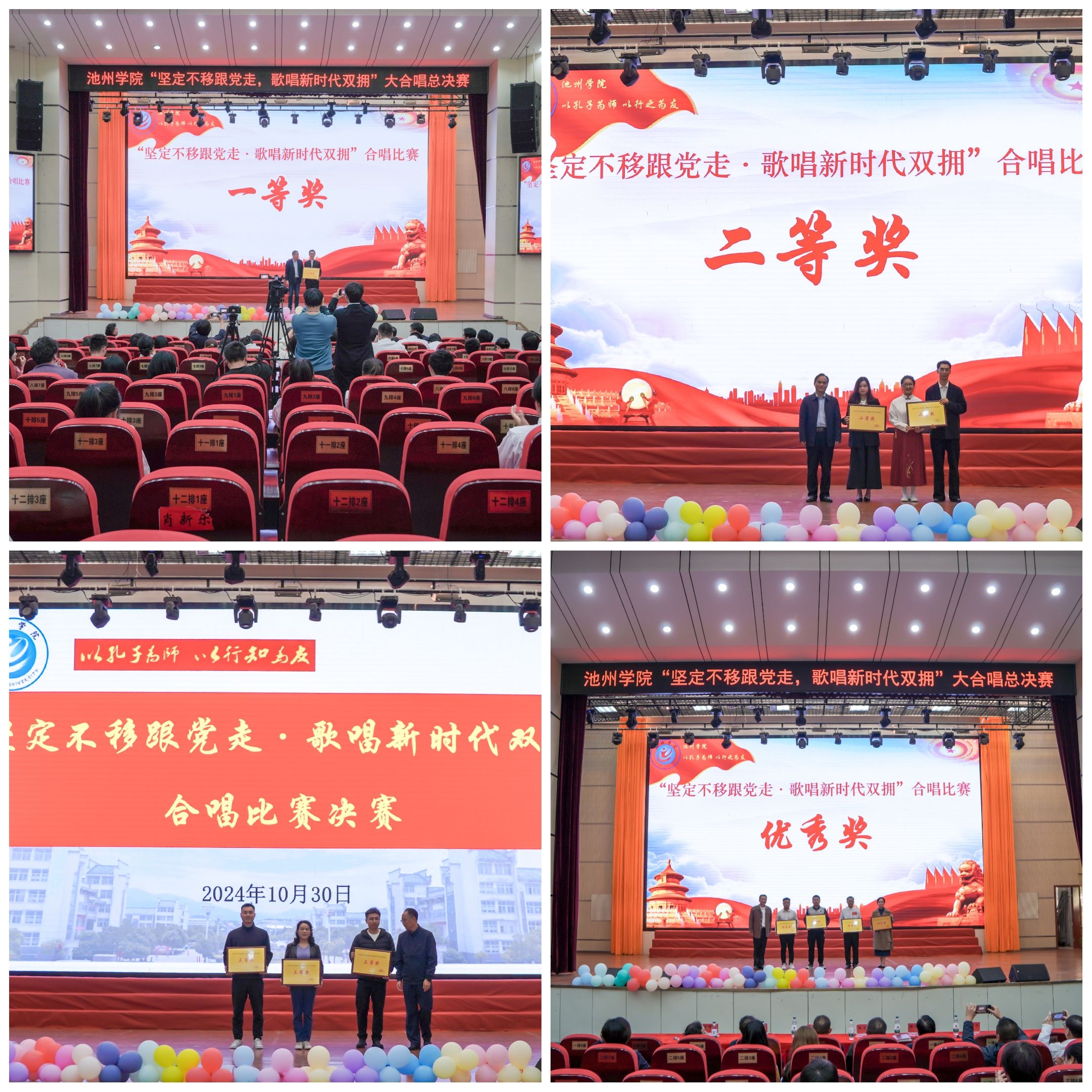 10月30日下午,为庆祝中华人民共和国75周年,大力弘扬 “双拥” 优良传统,best365手机版官方网站“坚定不移跟党走,歌唱新时代双拥”合唱总决赛在学校大礼堂精彩上演。校党委委员、副校长阳光宁出席活动。池州市退役军人事务局四级调研员汪鸣驹受邀担任评委嘉宾。