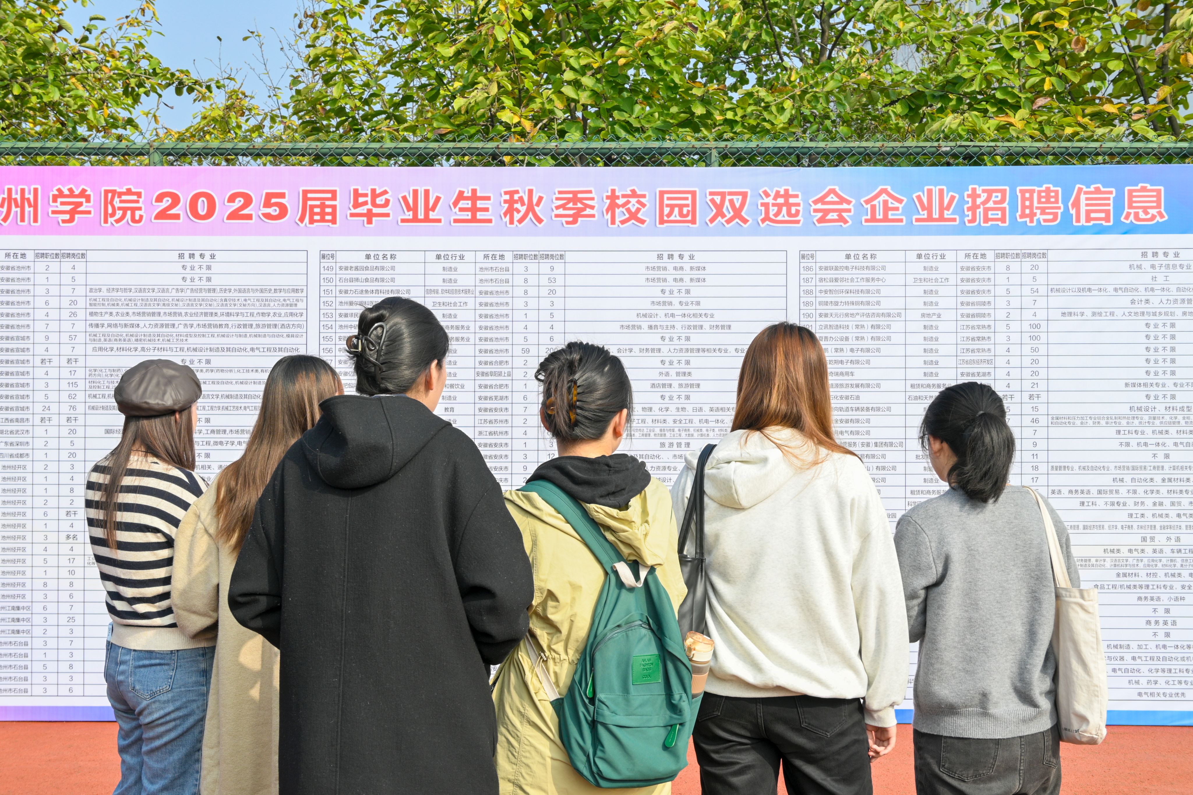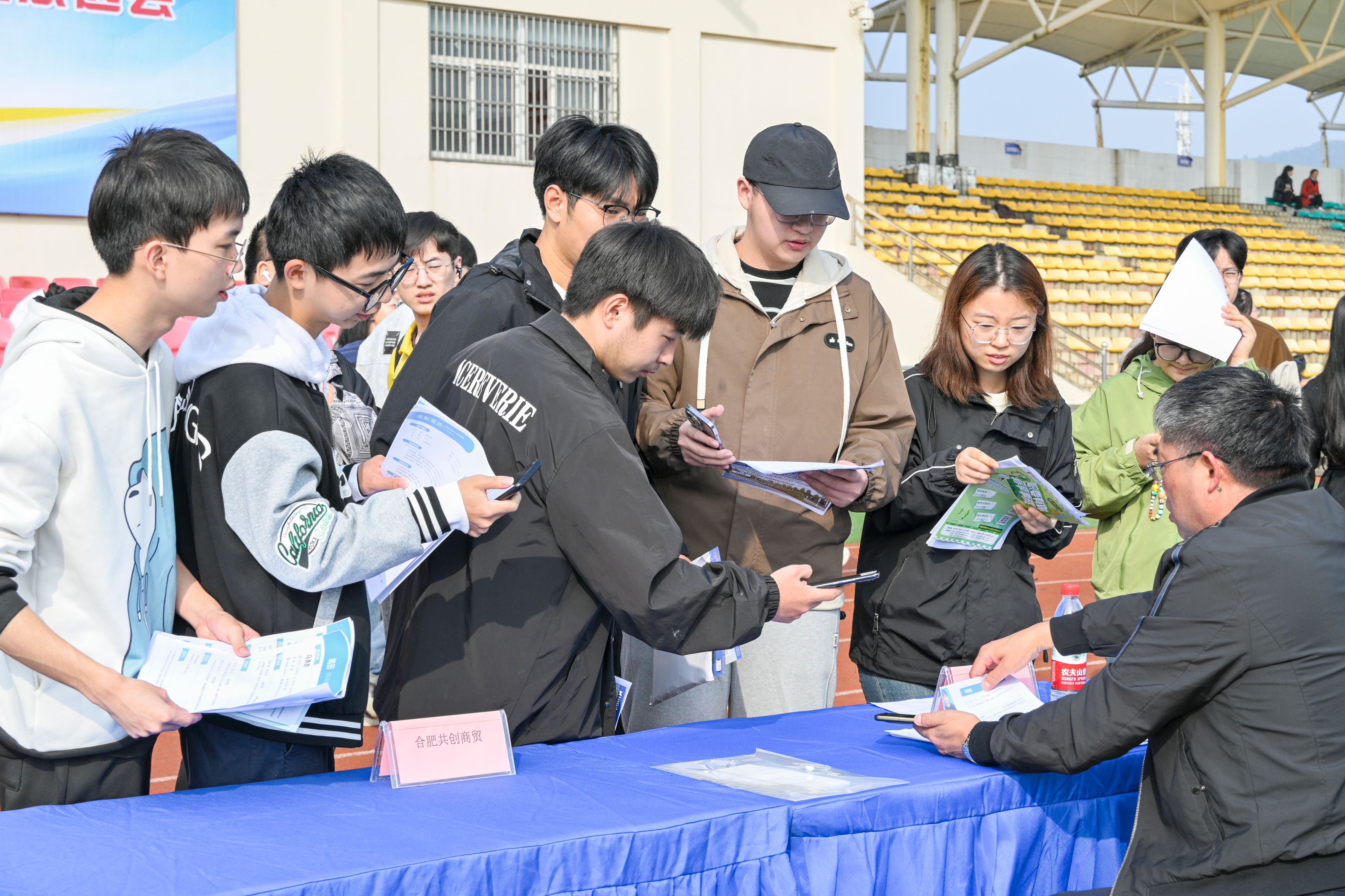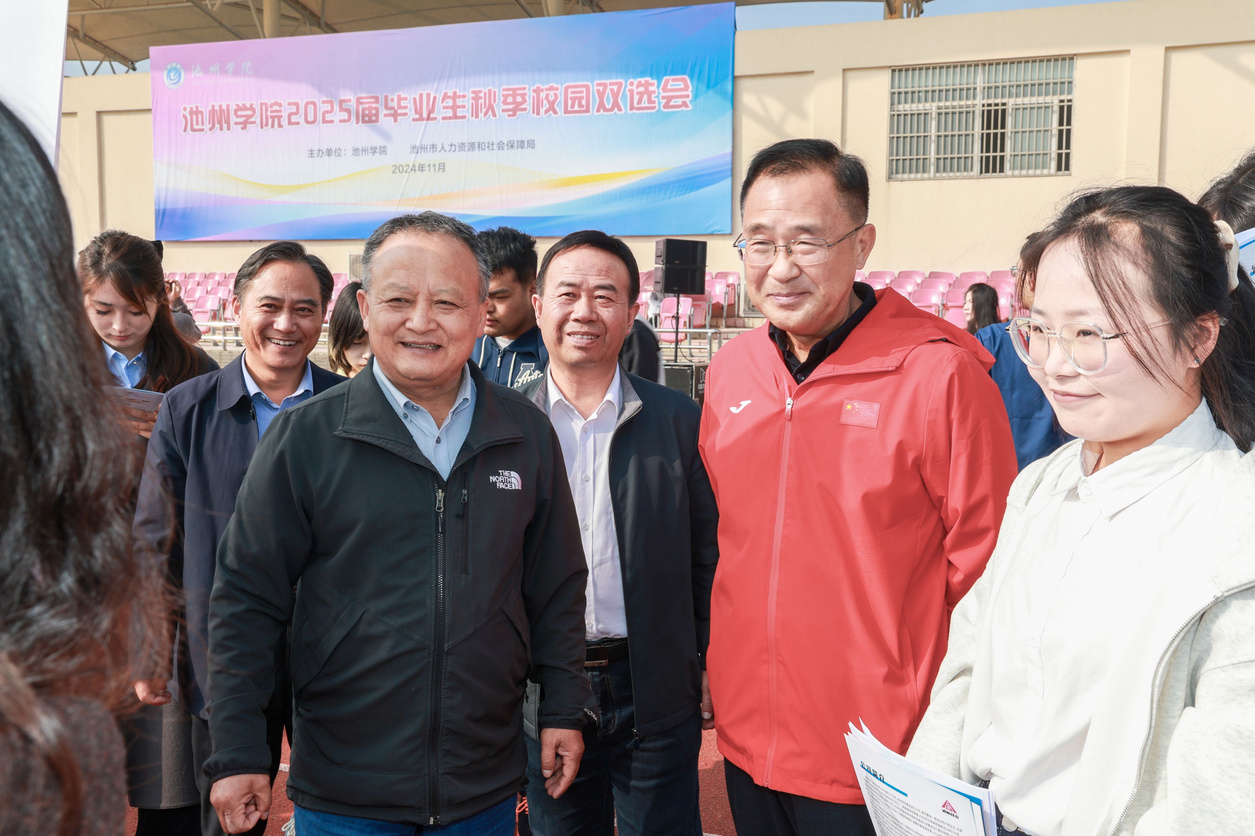 为学习贯彻党的二十届三中全会精神和全国教育大会精神,深入落实习近平总书记关于高校毕业生就业工作的重要指示精神,充分发挥校园招聘主渠道作用,助力2025届毕业生高质量充分就业,11月2日,学校联合池州市人力资源和社会保障局在best365手机版官方网站体育场顺利举行2025届毕业生秋季校园大型双选会。校党委委员、副校长阳光宁,校党委委员、副校长张赛,池州市人力资源和社会保障局党组成员、市人事考试指导中心主任章和平到现场指导。