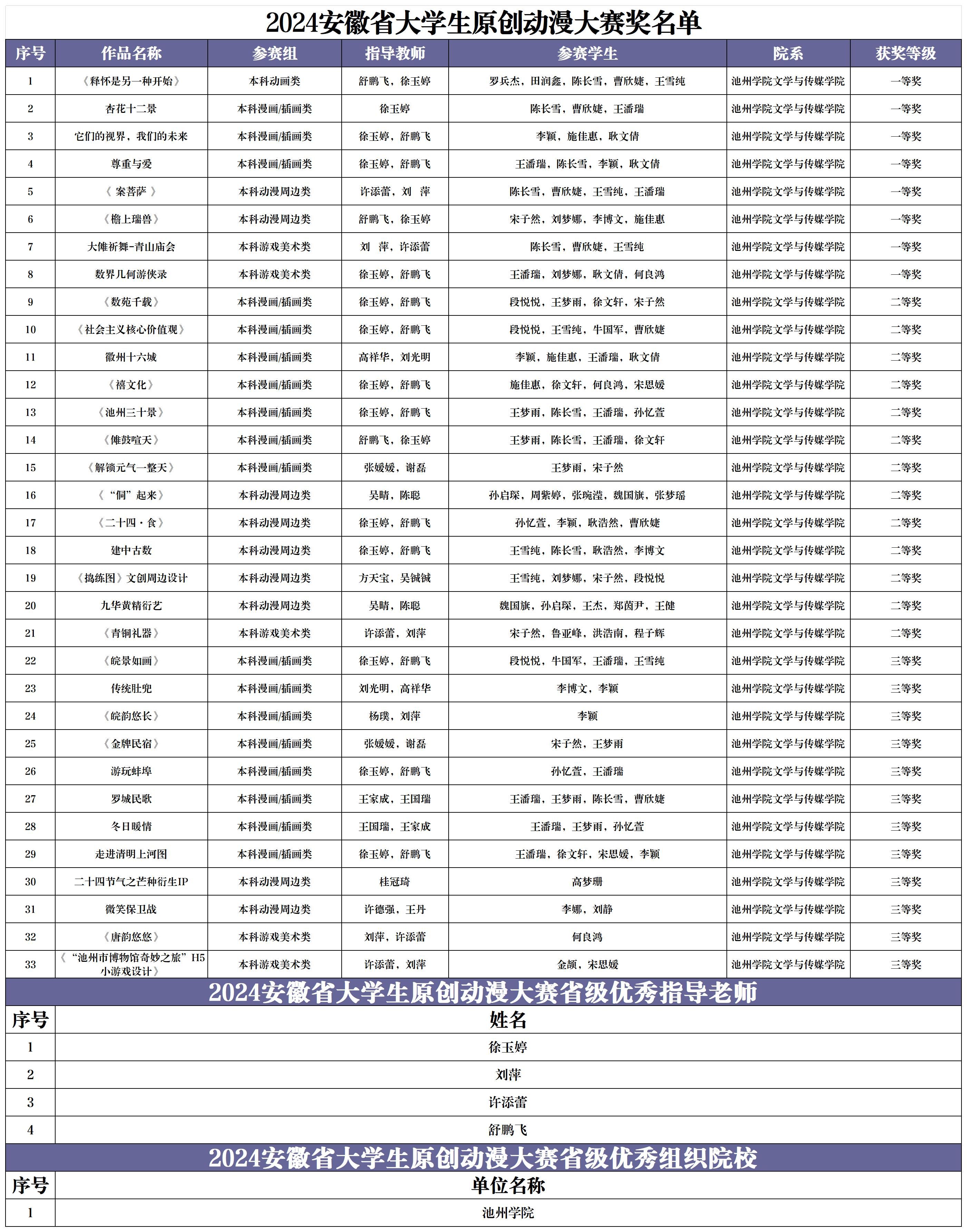 1月13日,2024年安徽省大学生原创动漫大赛评选揭晓。学校荣获一等奖8项、二等奖13项、三等奖12项,徐玉婷、刘萍、许添蕾、舒鹏飞四位老师获优秀指导老师奖,best365手机版官方网站被授予优秀组织单位奖。